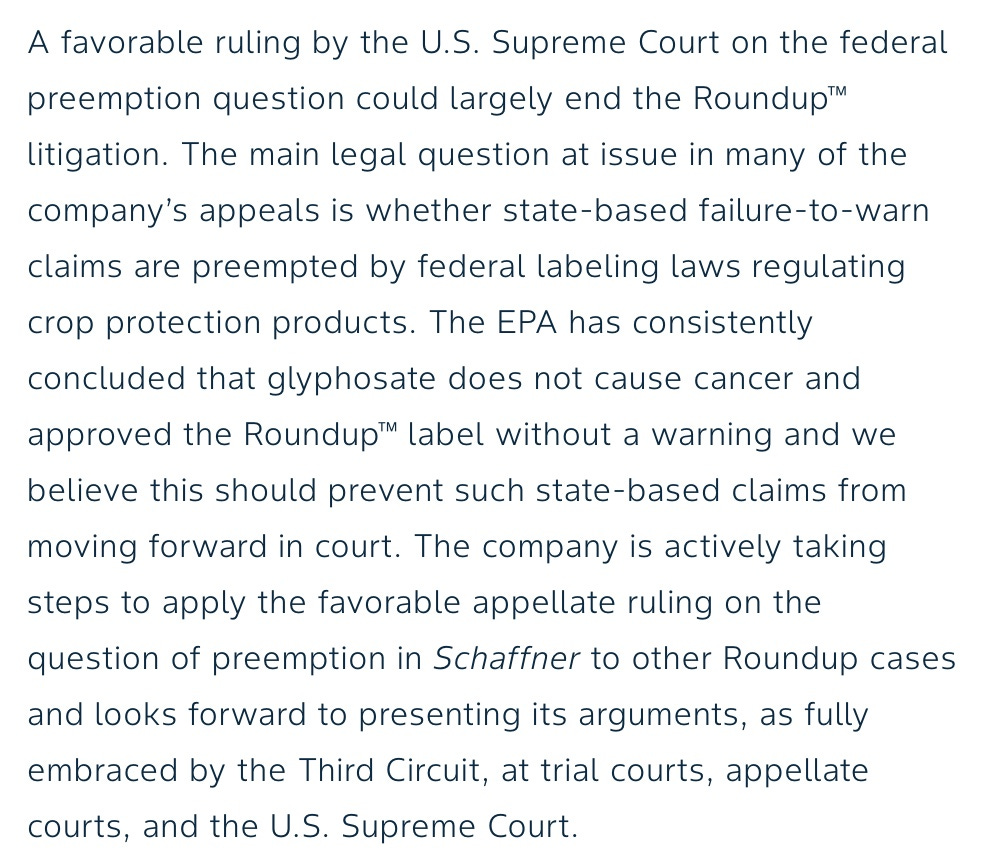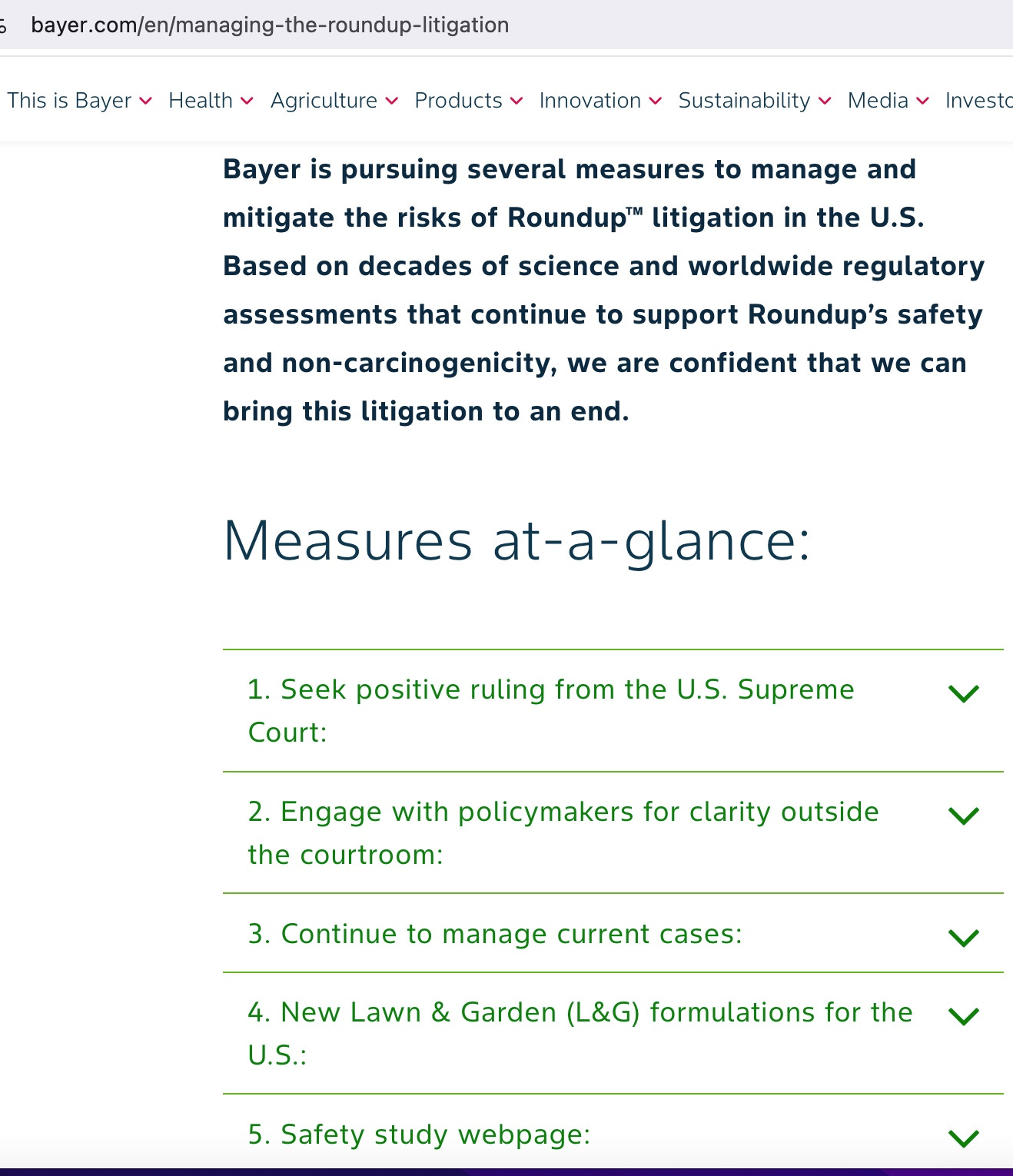 Bayer is throwing everything they have at this challenge, because it is a threat to the company’s very survival. Below is from Bayer’s Roundup litigation website.