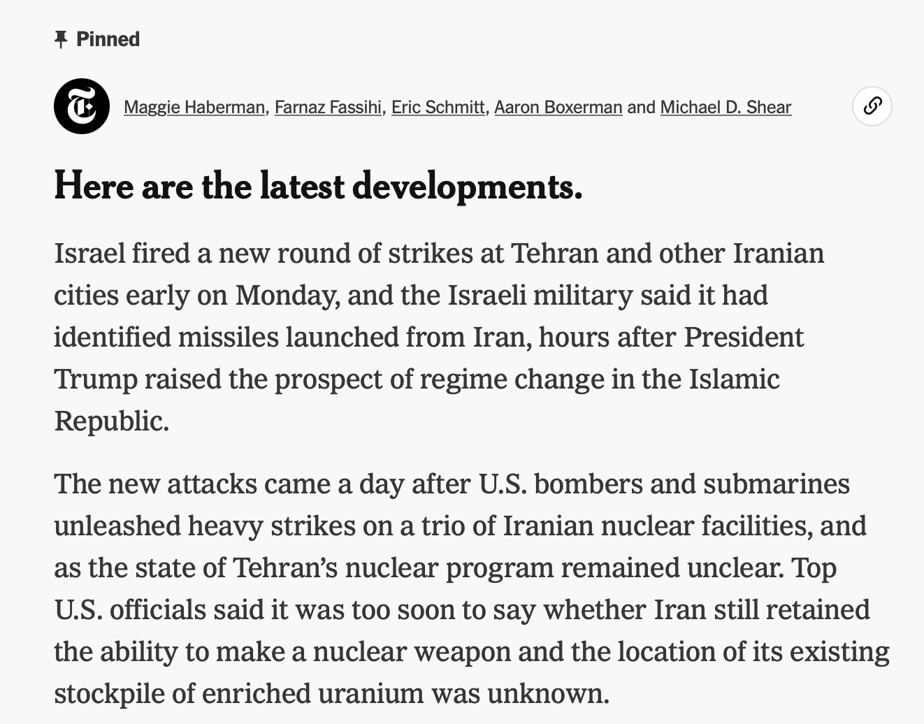 Addendum: By the same night Trump is talking regime change and the NYT still says “submarines.”