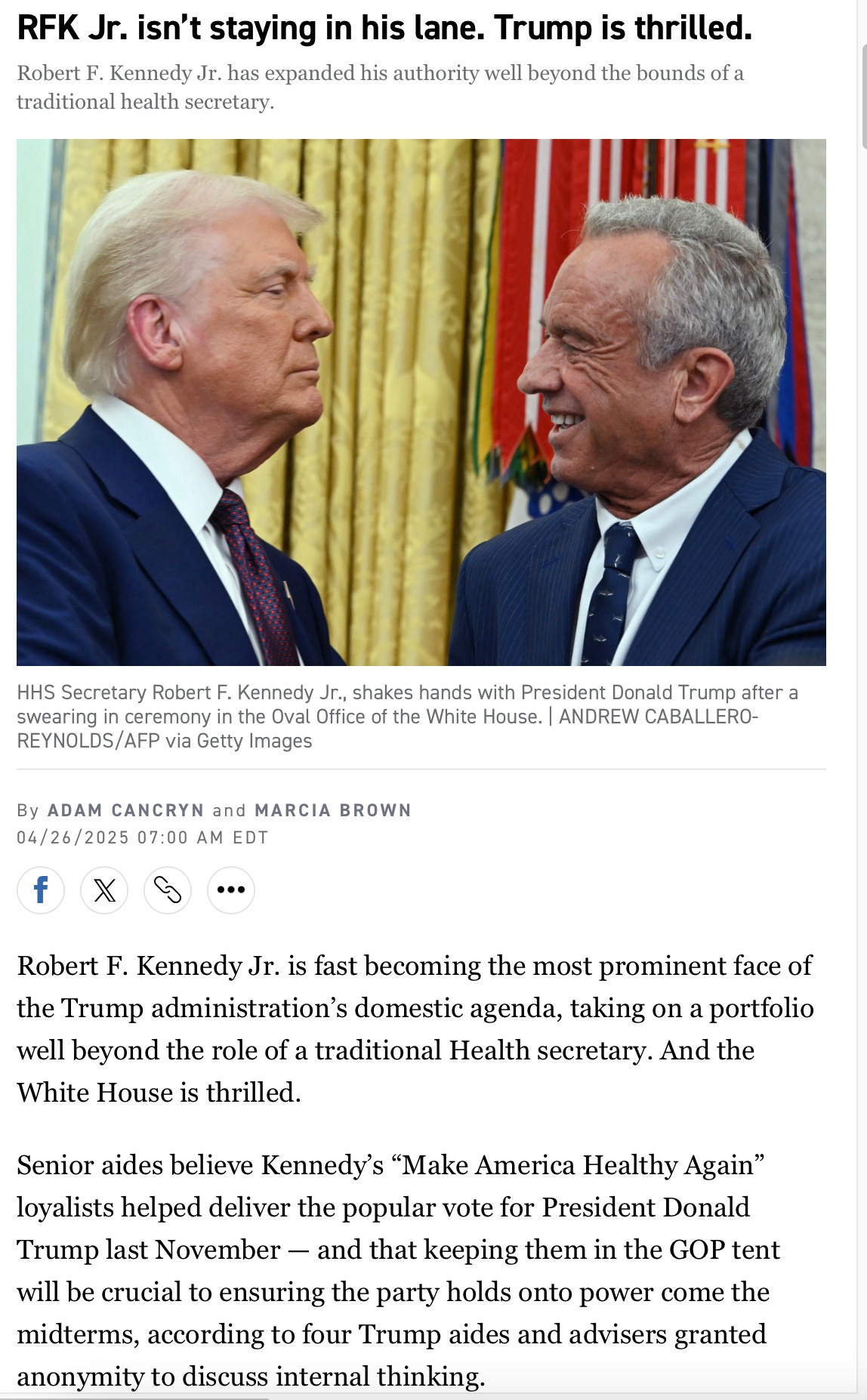 https://www.politico.com/news/2025/04/26/rfk-jr-isnt-staying-in-his-lane-trump-is-thrilled-00310770