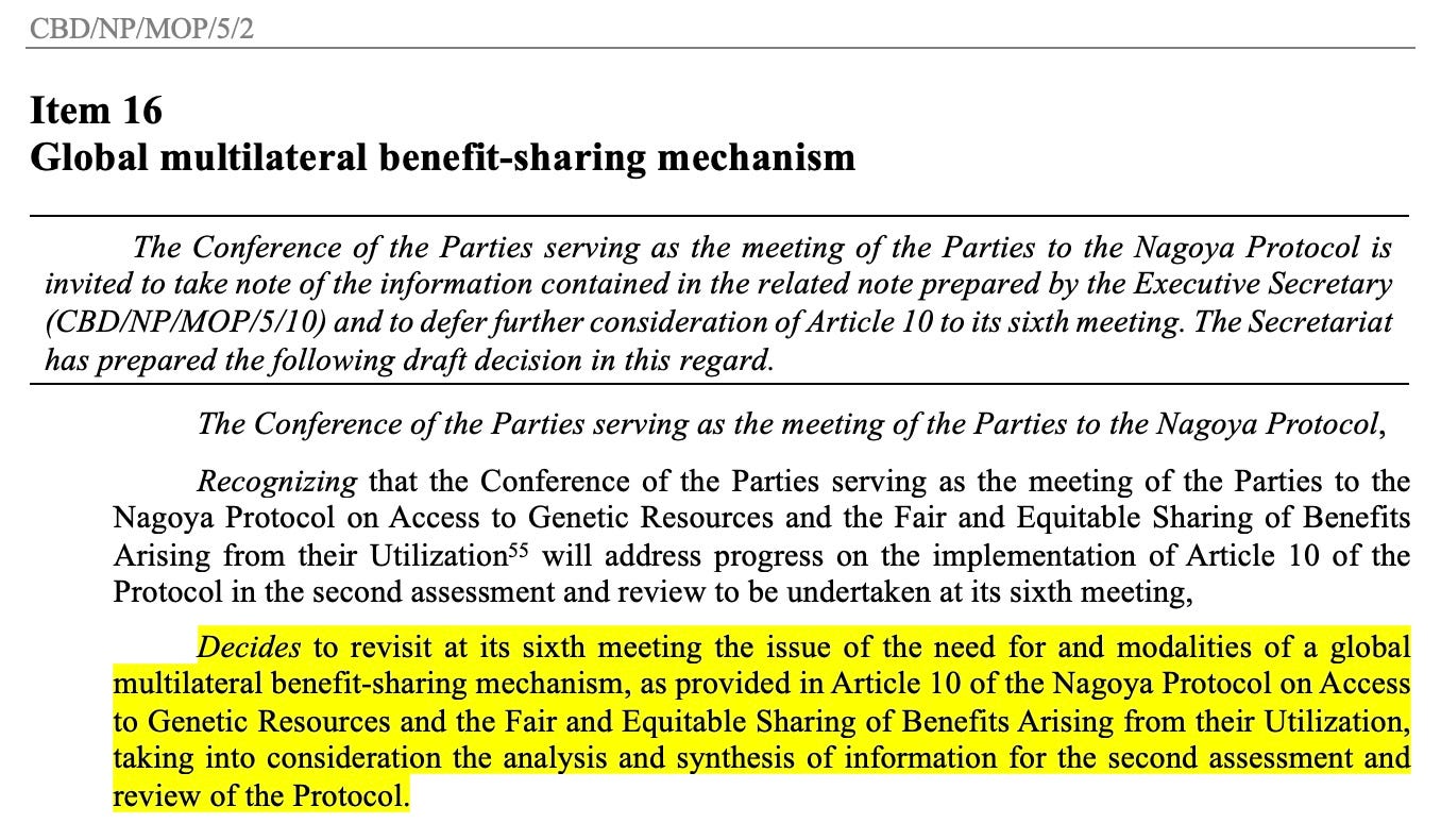 I discovered a parallel process related to “Pathogen Access and Benefit-Sharing” (an area of great disagreement in the Pandemic Treaty) going on in preparation for the UN Conference of the Parties 16 of the Convention on Biological Diversity, scheduled to meet Oct 21-Nov 1, 2024 in Cali, Colombia.