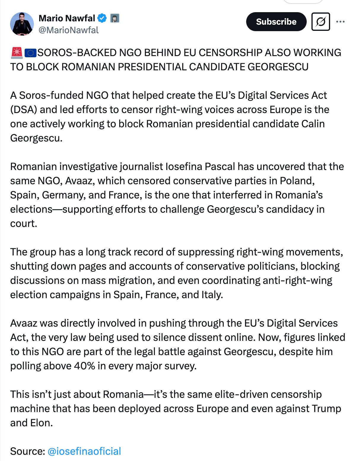 The EU is literally another empire, a bloated out-of-touch unelected bureaucracy which strangles the sovereignty and freedom of speech of its members. They want to get rid of Viktor Orban, one of the few honest voices in the bloc, they want to steal from pensions to fund the war in Ukraine, and Ireland has been planted with migrants beyond the point of no return with these EU mandates. Of course they are going after Georgescu! He won't bow to the Soros captured EU! It's horrific to watch.