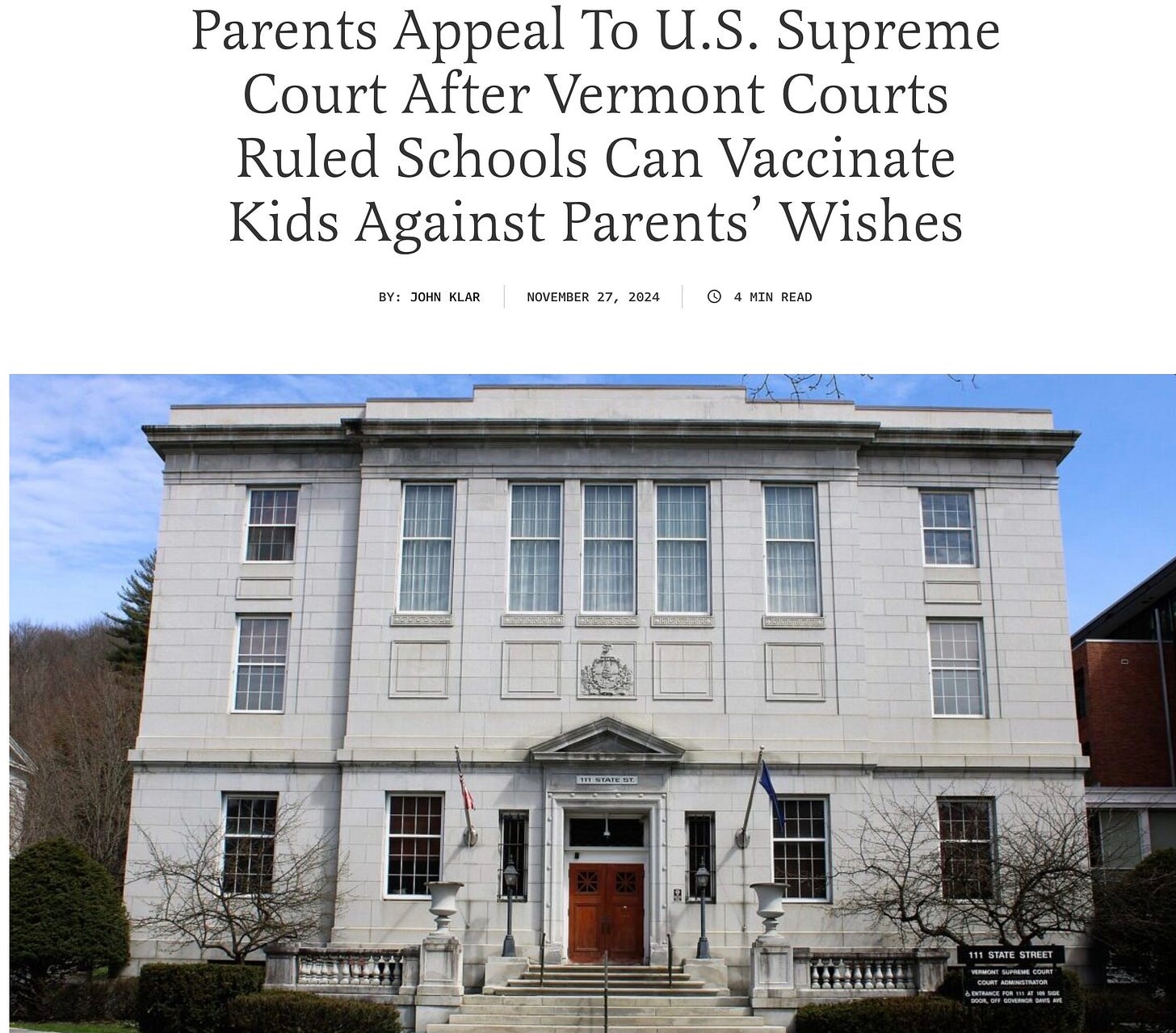 Can schools just vaccinate children against the parents' and child's wishes? Vermont's Supreme Court said yes. Will the US Supreme Court weigh in on this issue?