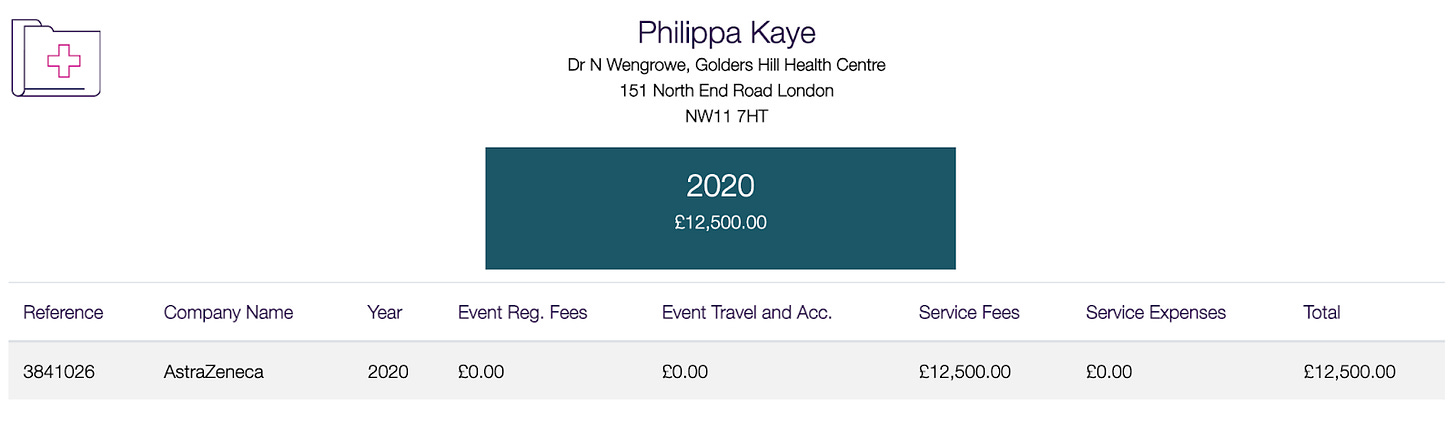 According to the Association of the British Pharmaceutical Industry (ABPI)’s Disclosures U.K. database, AstraZeneca’s payment of £12,500 to Dr. Philippa Kaye was declared in 2020. Since then, Dr. Kaye has publicly supported AstraZeneca’s COVID-19 vaccine and downplayed side-effects generally from all COVID-19 vaccines, saying the side-effects “are a good thing” and “your body showing you that its immune system is working”.