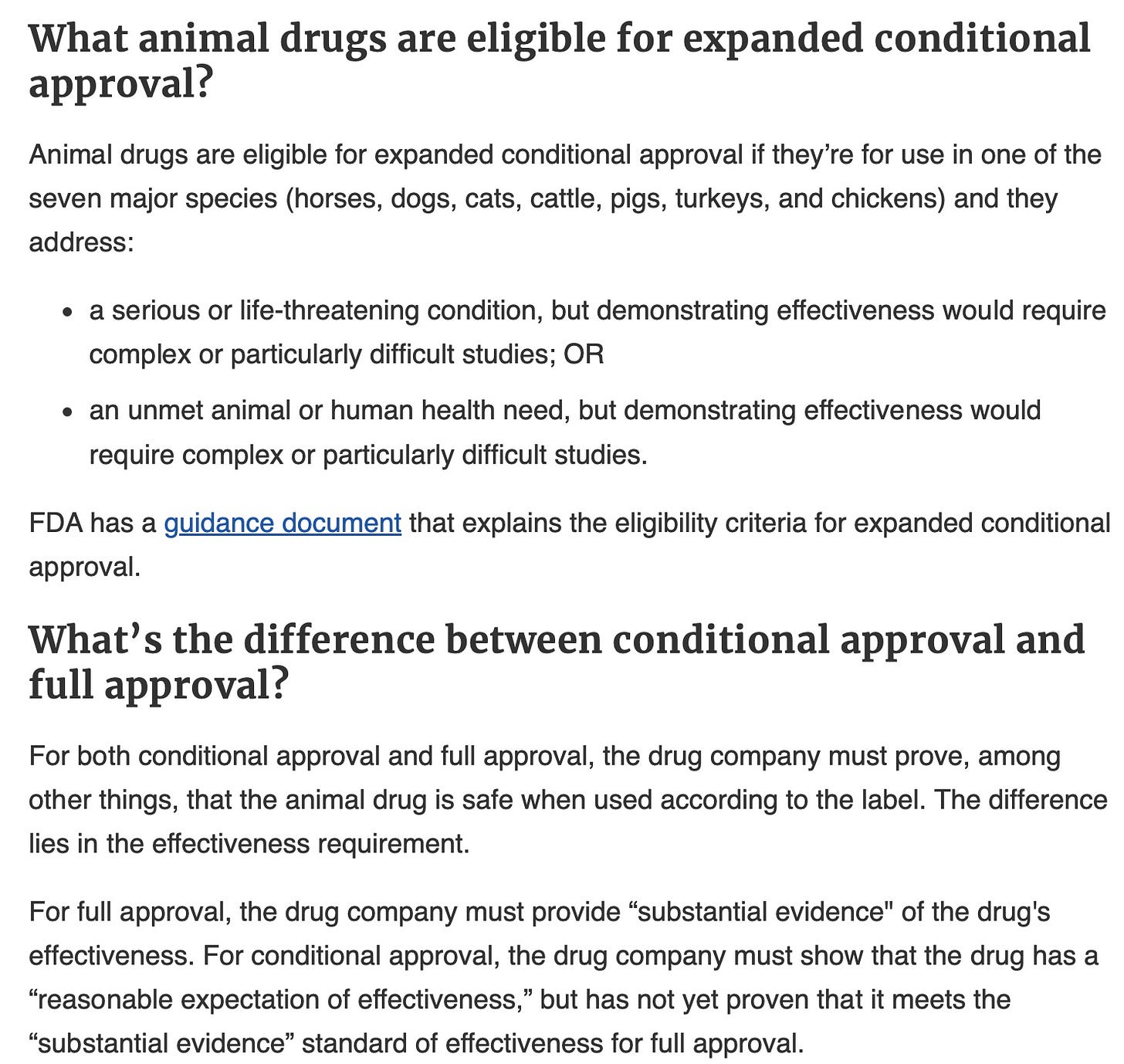 Here is what FDA has to say about conditional approvals of veterinary vaccines: