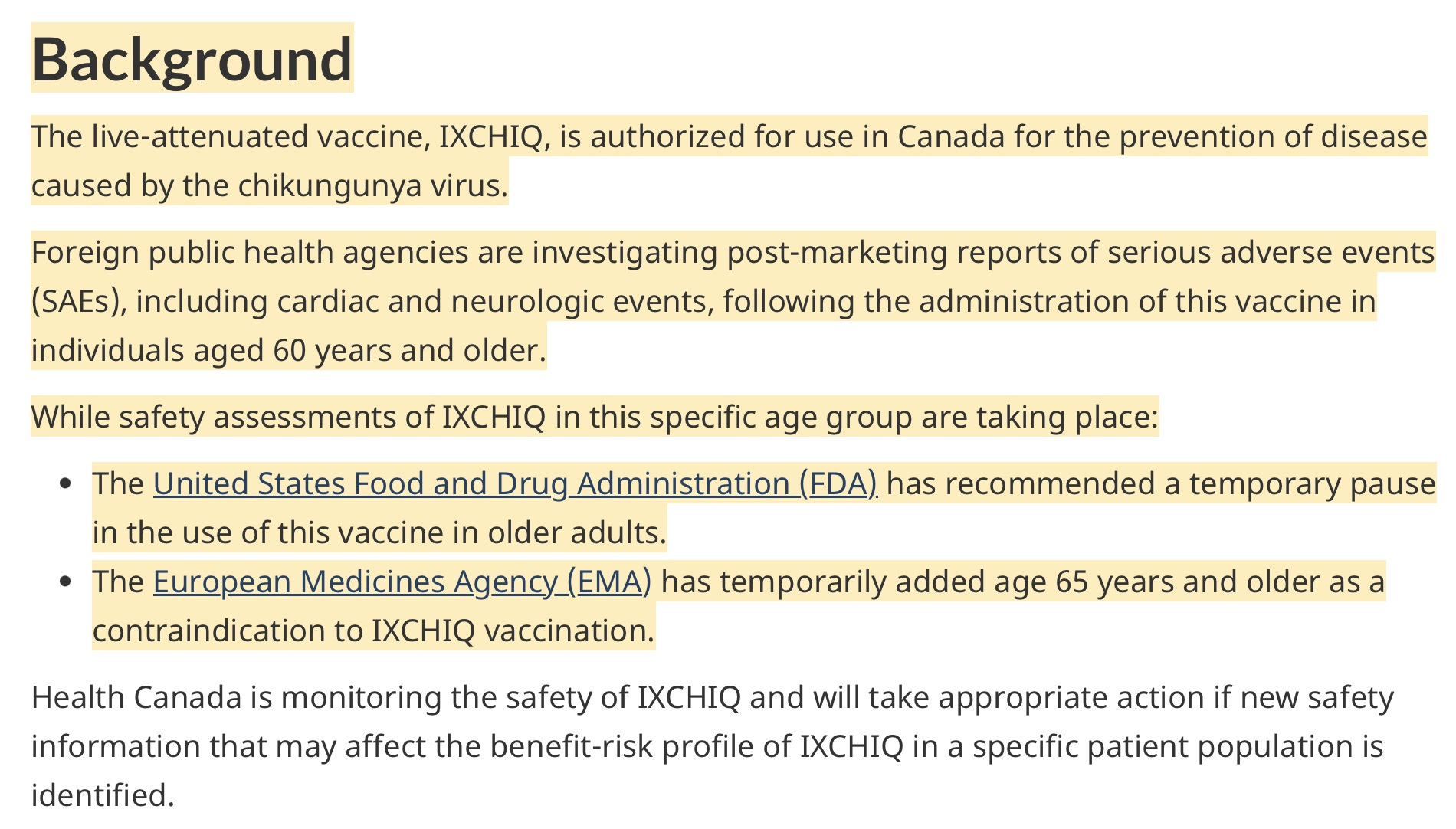 On May 30, 2025 Canada, which had authorized use of the “vaccine” began having second thoughts and published the following to cover its behind, while allowing the product to continue to be used, even though there is no chikuvgunya in Canada.