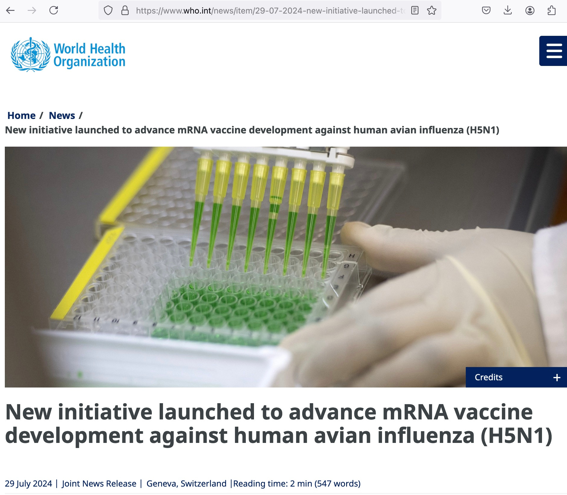 "This initiative exemplifies why WHO established the mRNA Technology Transfer Programme – to foster greater research, development and production in low- and middle-income countries, so that when the next pandemic arrives, the world will be better prepared to mount a more effective and more equitable response," said Dr Tedros Adhanom Ghebreyesus, WHO Director-General.