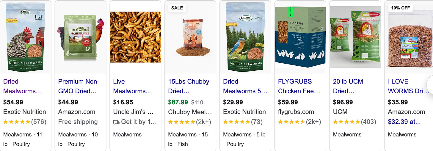 Where do you think that $30 billion is going? Some of it is going to a massive expansion of insect farms, mostly growing mealworms and crickets.