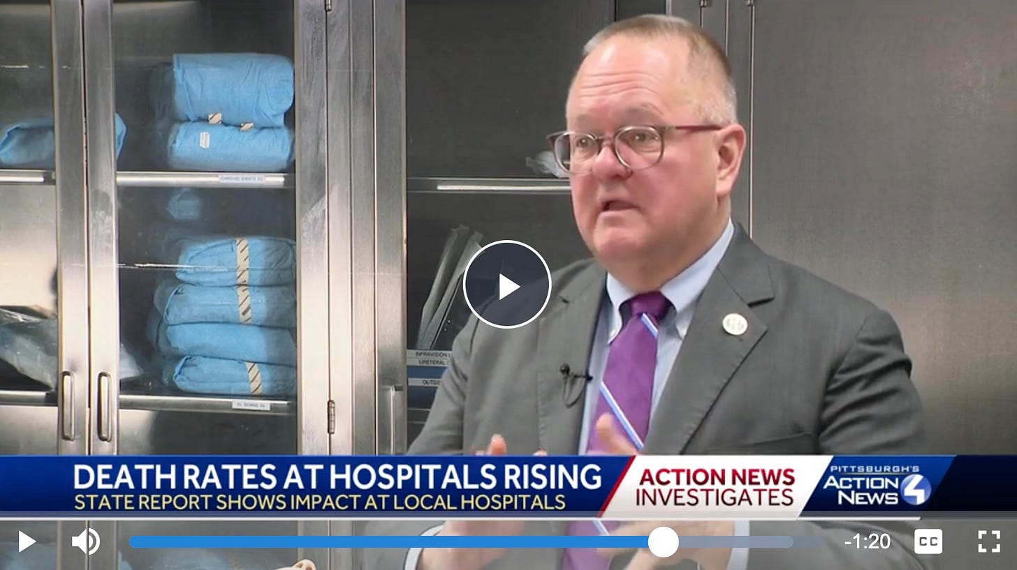 Watch the video above, in which a news program is reporting on skyrocketing hospital mortality rates. It is only about a minute, but it is shocking and frightening and disgusting. (Don’t click the arrow below; it does not work.)