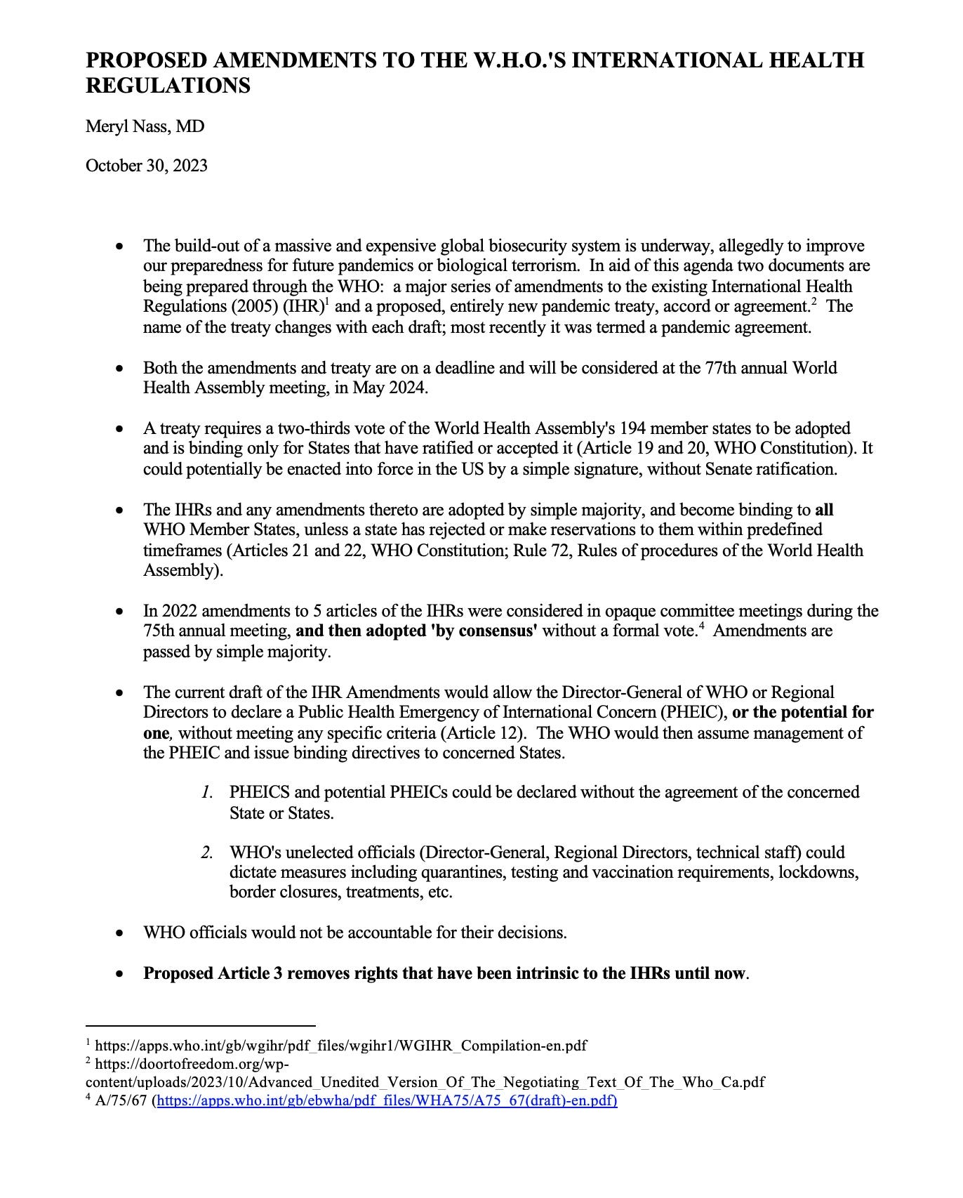 Describing the WHO's proposed pandemic treaty and International Health Regulations amendments, and identifying specific problems in the amendmentsMeryl NassOct 30, 20231242412SharePreviousNext