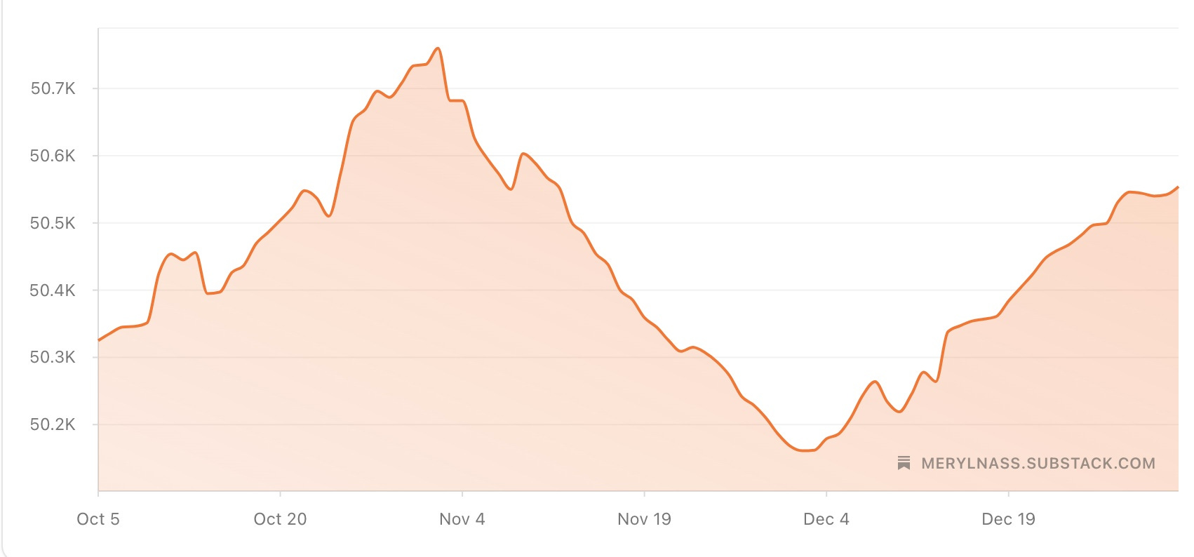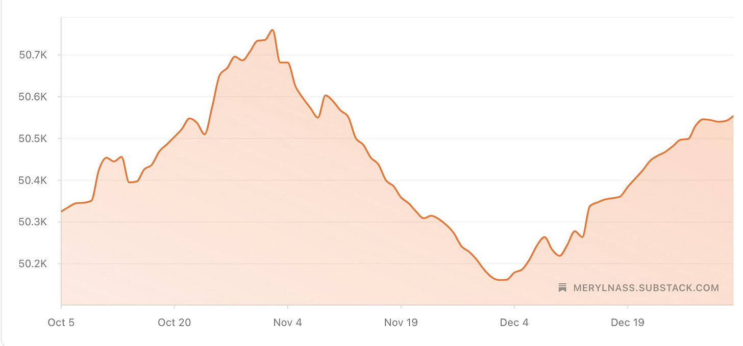 And after beating down my subscriber numbers from Nov 1 to Dec 1, Substack is now allowing them to slowly climb back up.
