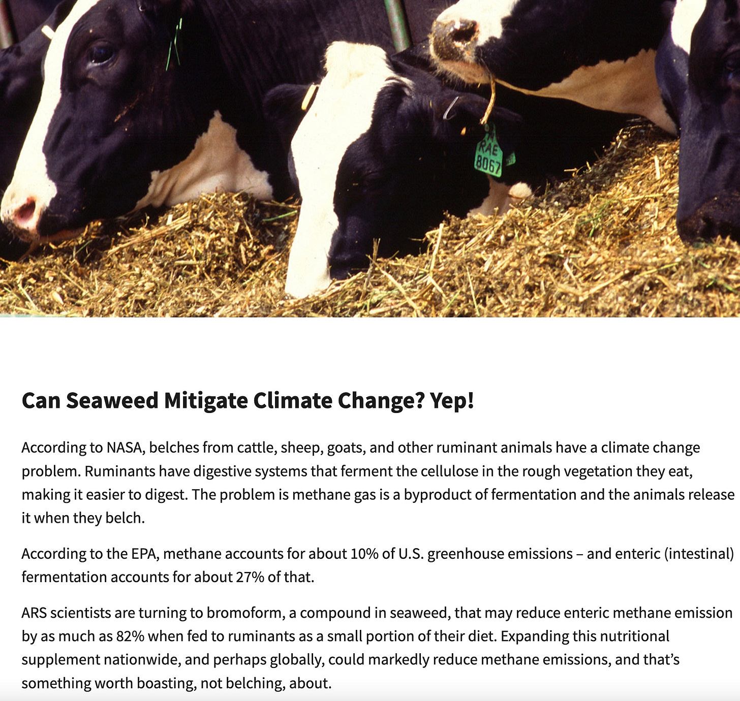 Here is an earlier post in which I discussed the methane scam. For some reason substack and google are not finding the rest of my posts on this subject. But here is a USDA post on the value of seaweed for ending 82% of the the methane belches. Denmark is a peninsula surrounded by water—I bet they have a lot of useful seaweed.