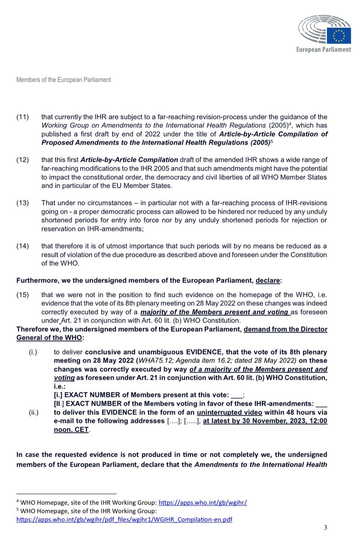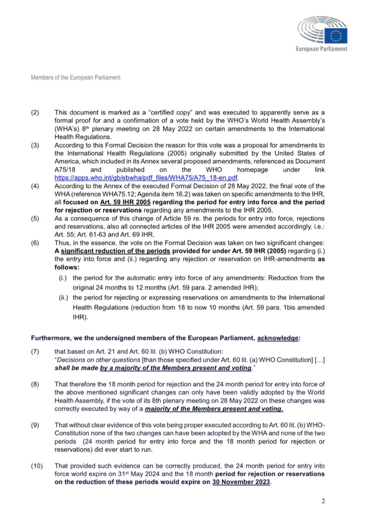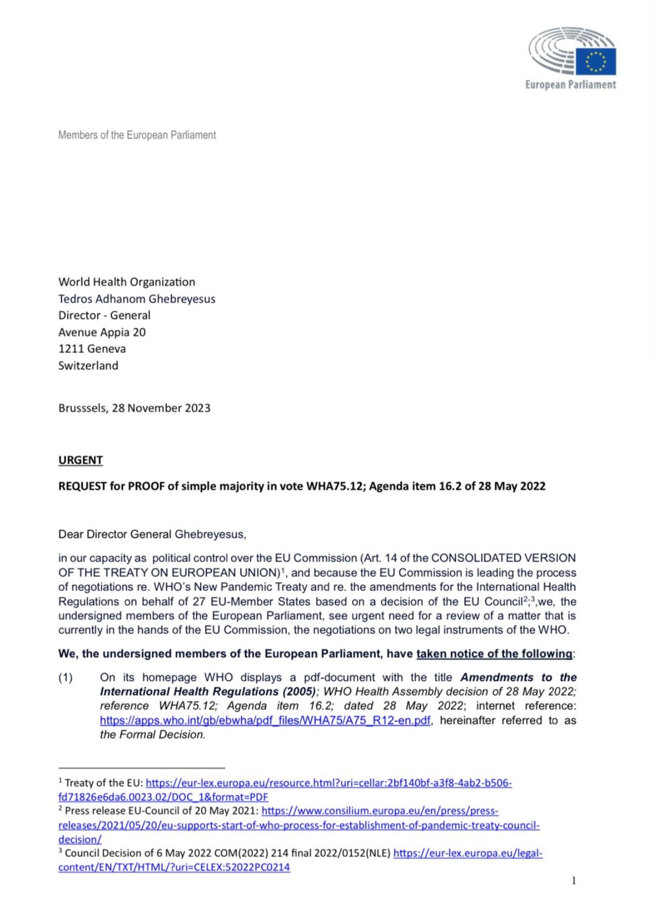 NEWS: #WHO wants to change international law on pandemics. To push it through, they are now attempting to break the rules. I, together with colleagues in the EU Parliament, formally object to this. We submitted this letter to