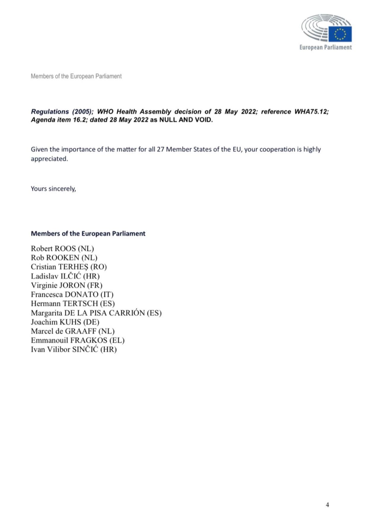 The European Parliament serves as the political control of the EU Commission, giving it the right to oversee matters involving WHO treaties. Rob Roos of the Netherlands and eleven other parliamentarians want to know what happened.