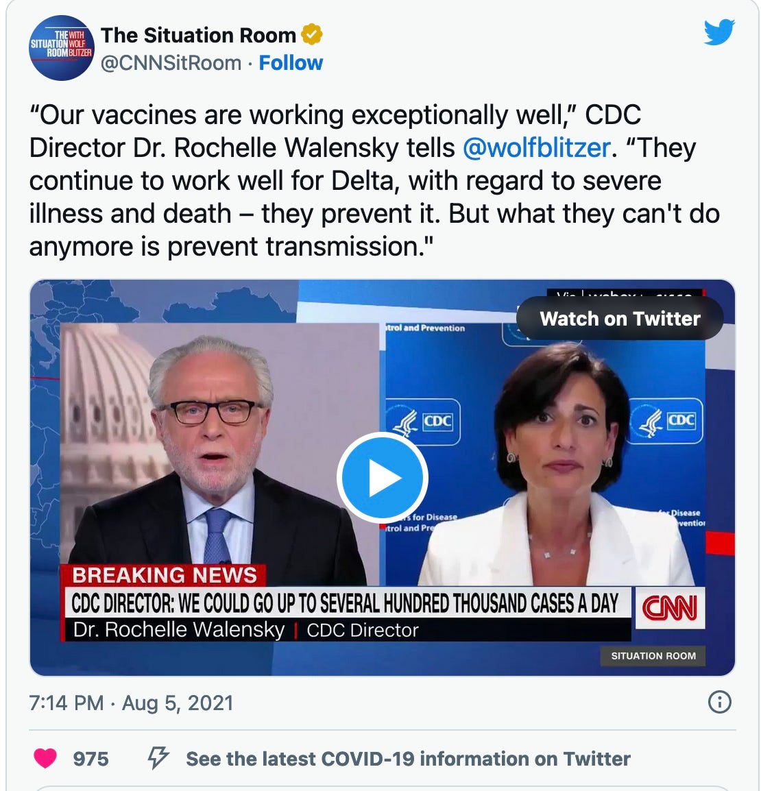 My testimony to the New Hampshire legislature in 2021 includes many links regarding vaccine efficacy, including an August 5, 2021 interview of Rochelle Walensky by Wolf Blitzer and a similar pronouncement at the same time by UK Prime Minister Boris Johnson. Yet the shots continued to be pushed. It didn’t make sense.