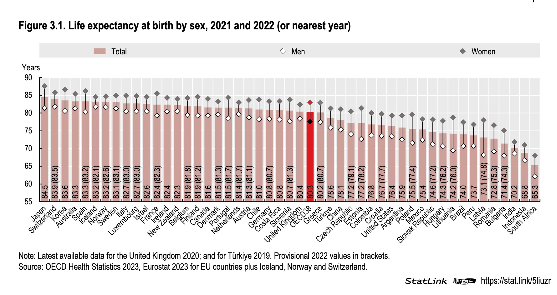 from 3 different sources it looks simply awful, and we don't have 2023 or 2024 numbers yet, so these graphs miss any effects on longevity from COVID vaccines for the past 2 years