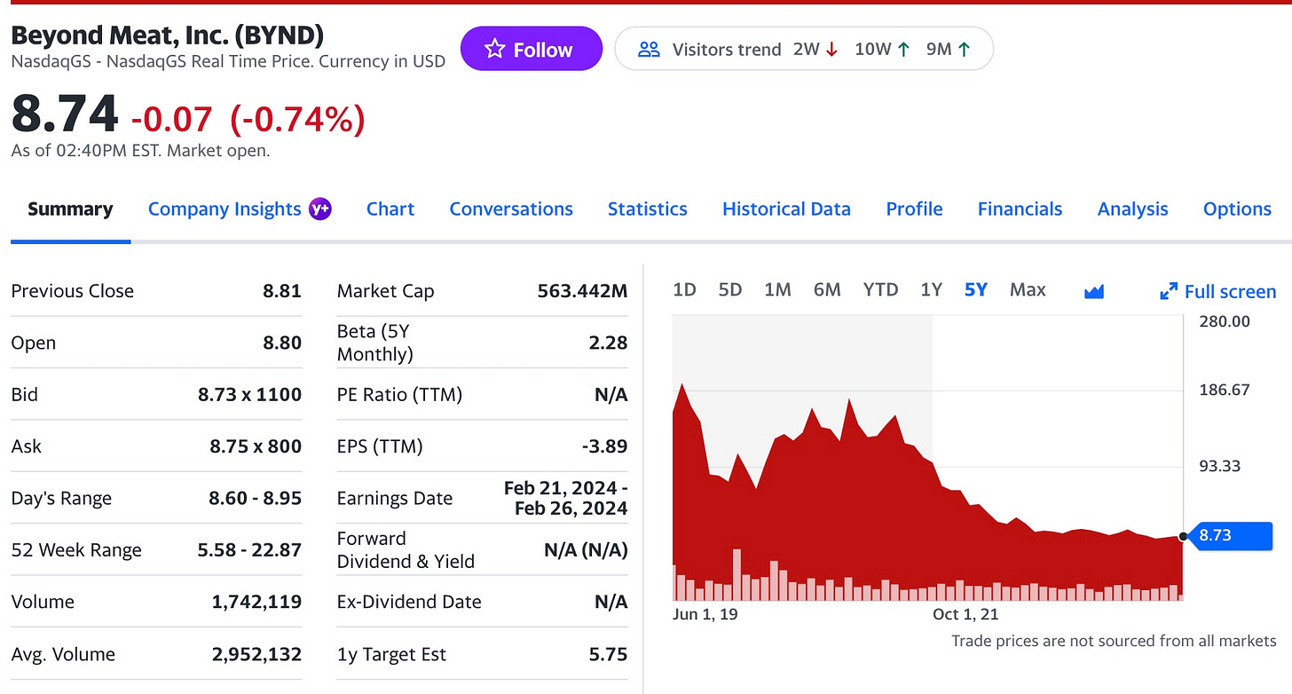 Falling falling falling. The stock price of fake meat