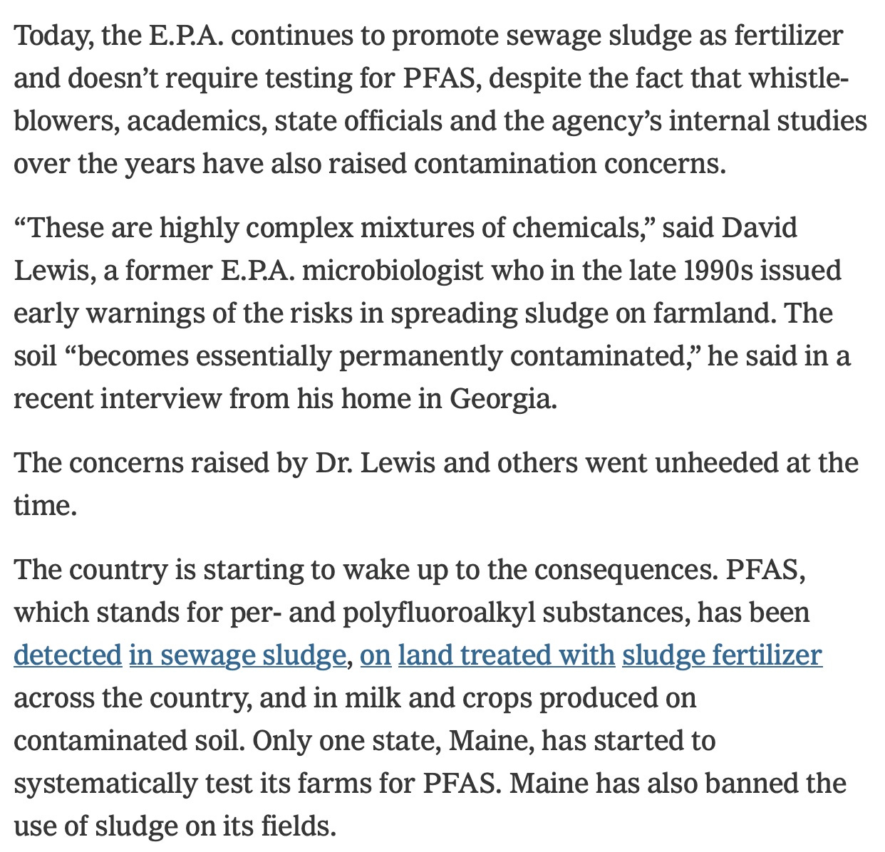 Snippets from 2 NYT articles and a link to our symposium talk on sewage sludge. How many ways have we been poisoned due to our health agencies working against our health?