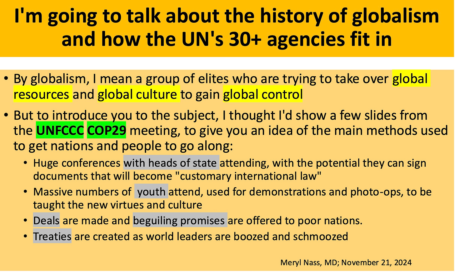 I’ve recently been writing and speaking about how UN conferences, agreements and formal treaties have been used to centralize control of the planet, its resources and people. Here is the start of the talk I gave last week, which is relevant to the meeting that starts tomorrow.