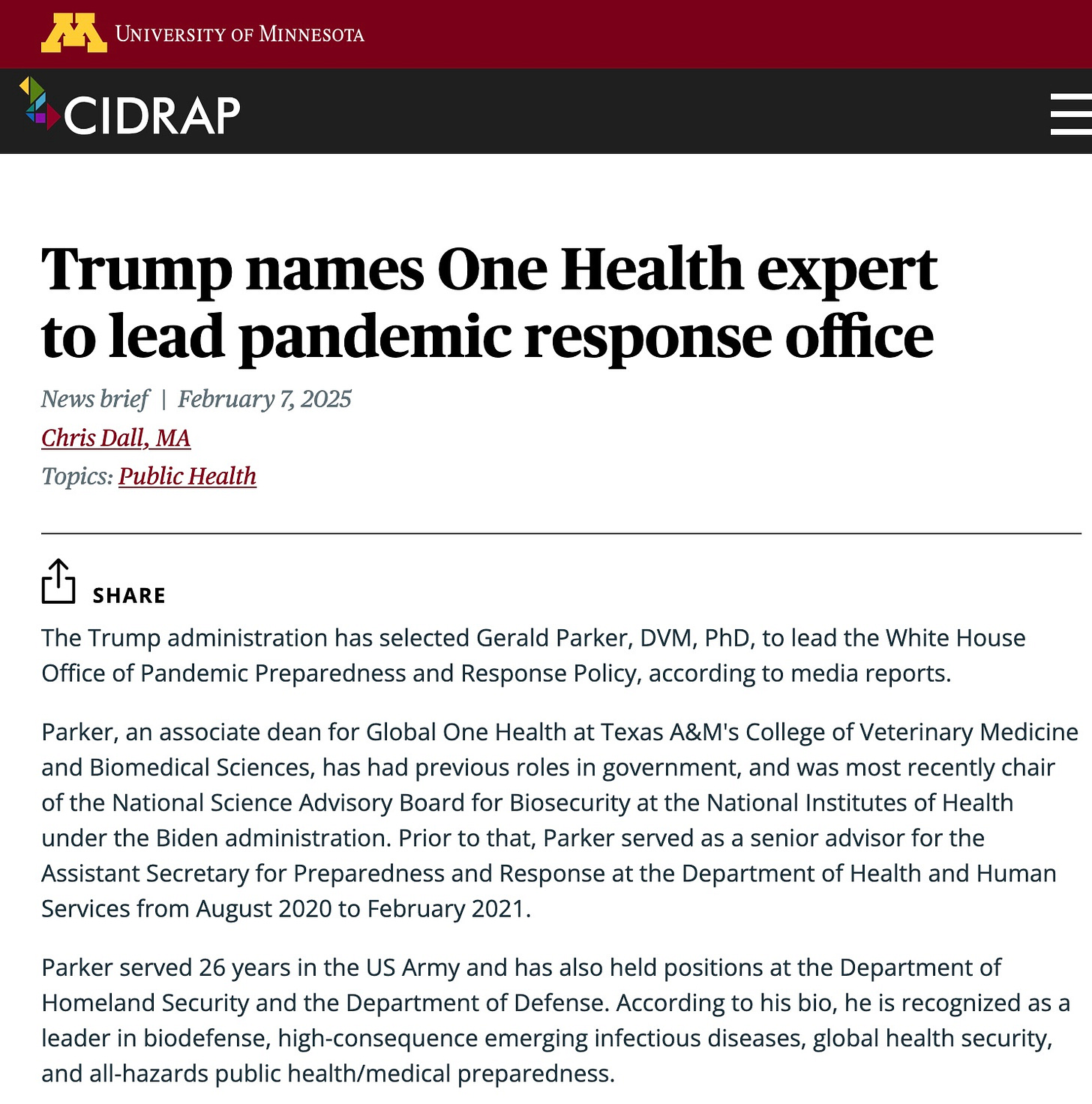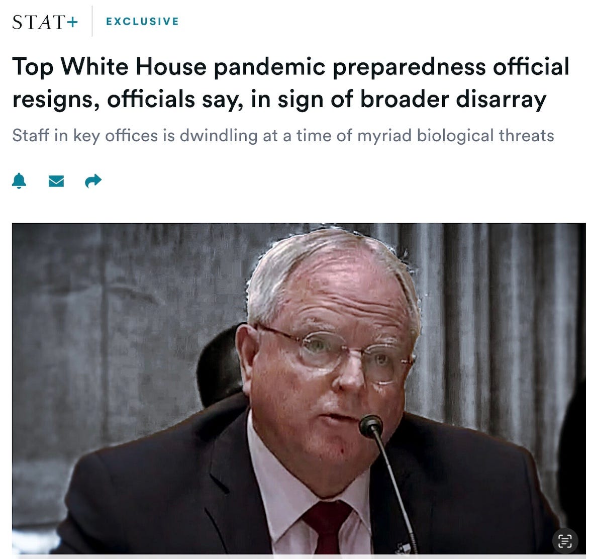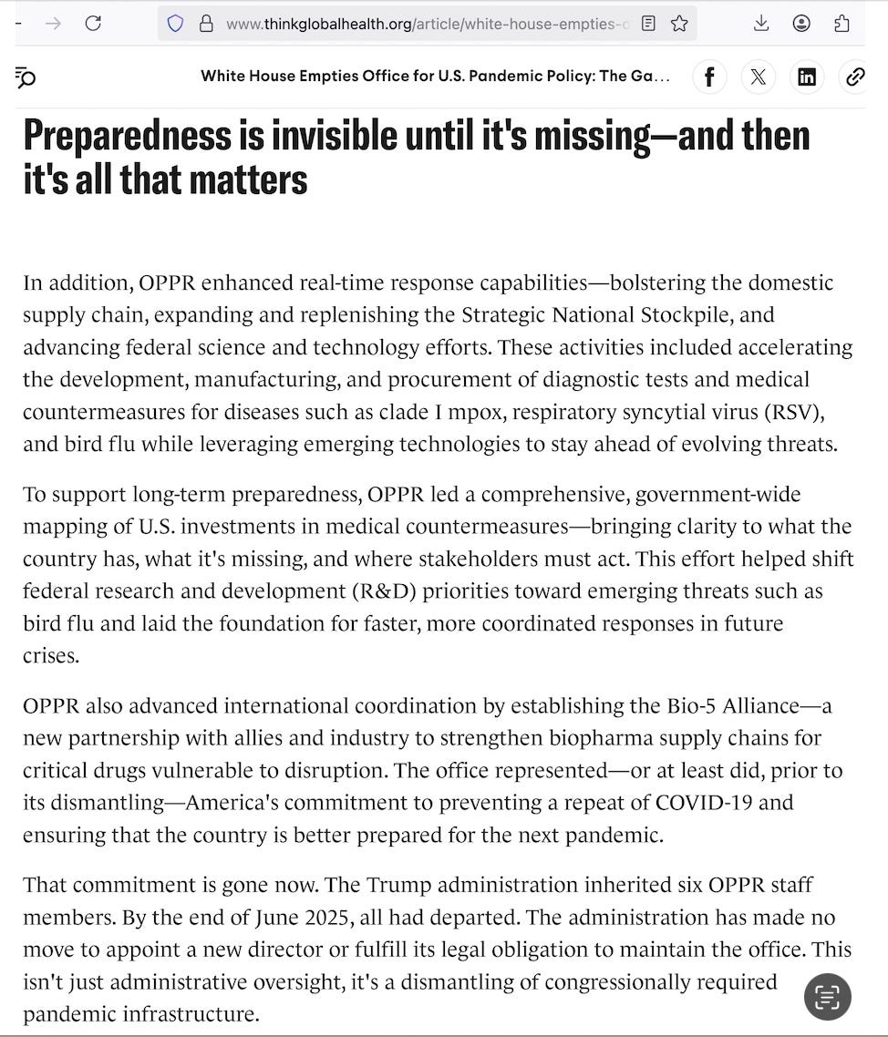 In addition, but quietly, the relatively new (2023) White House office of pandemic preparedness and response seems to have been quietly dismantled as well.