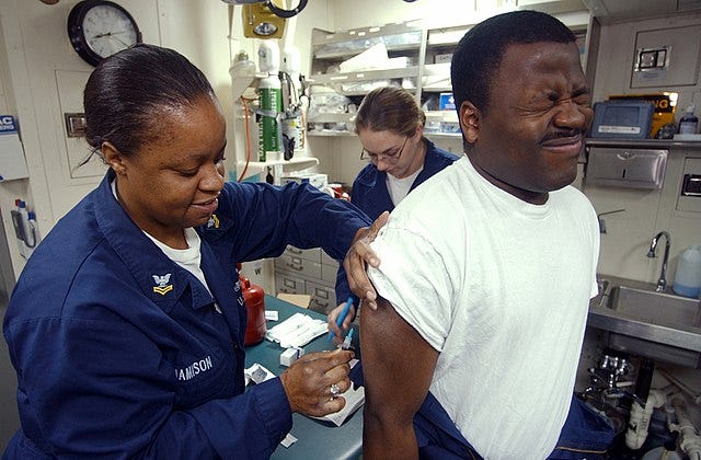 “The adverse reaction rate of the vaccine is 100 times the figure initially stated by the vaccine’s manufacturer. Adverse reactions include immune disorders, muscle and joint pain, headaches, rashes, fatigue, nausea, diarrhea, chills and fever,” reported the newspaper. “At least half a dozen deaths and a number of birth defects have been attributed to its use. More than 100 service members have been court-martialed for refusing the vaccine, 500 have been punished, and at least 300 pilots left the service after being told that they must be vaccinated.”