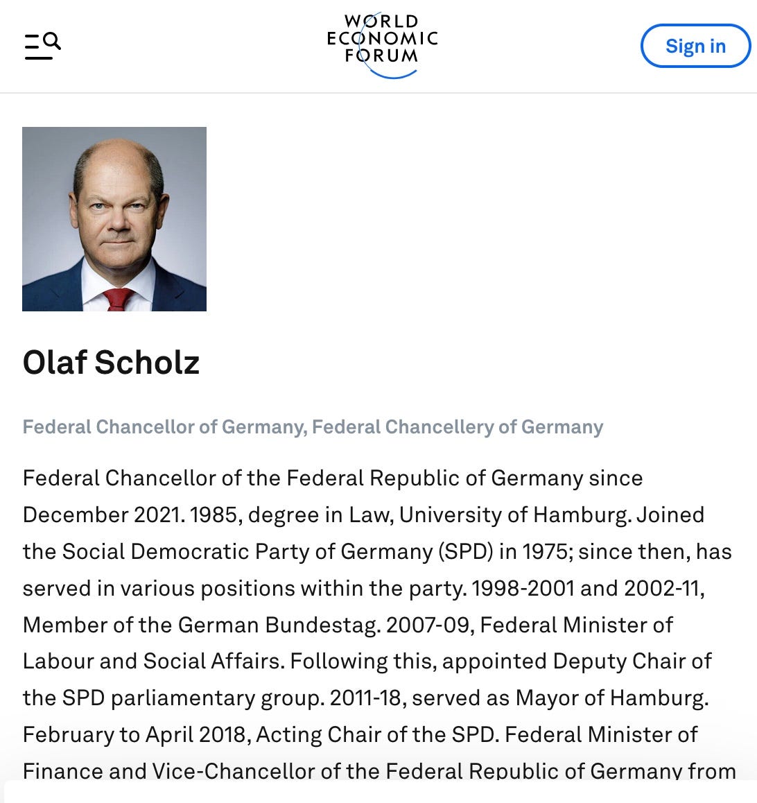 WEF Agenda Contributor and PM of Germany Olaf Scholz:
