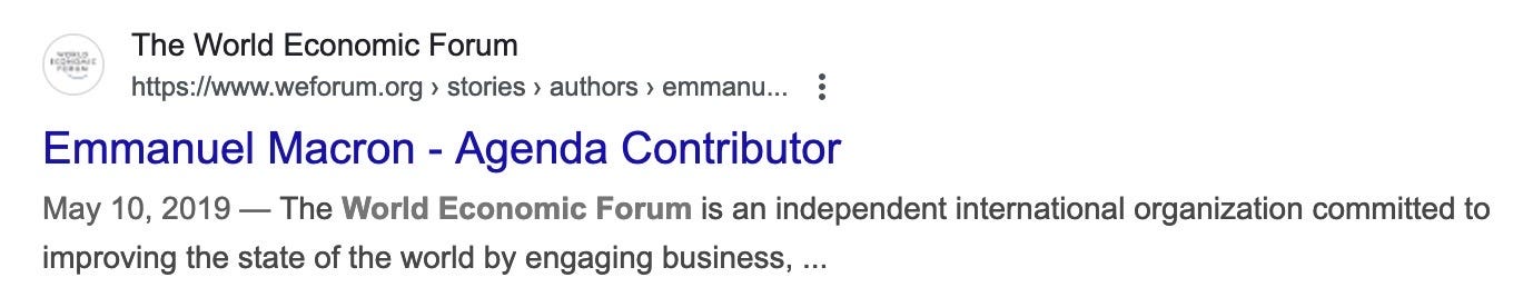Emmanuel Macron, Young Global Leader and WEF Agenda Contributor
