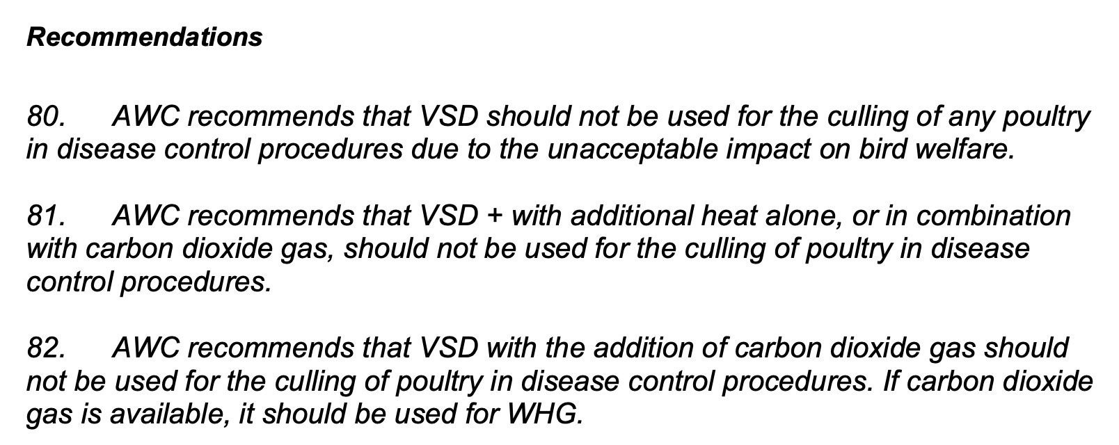 In Wales, the government published a report on the VSD slow kill method of cooking and suffocating birds.
