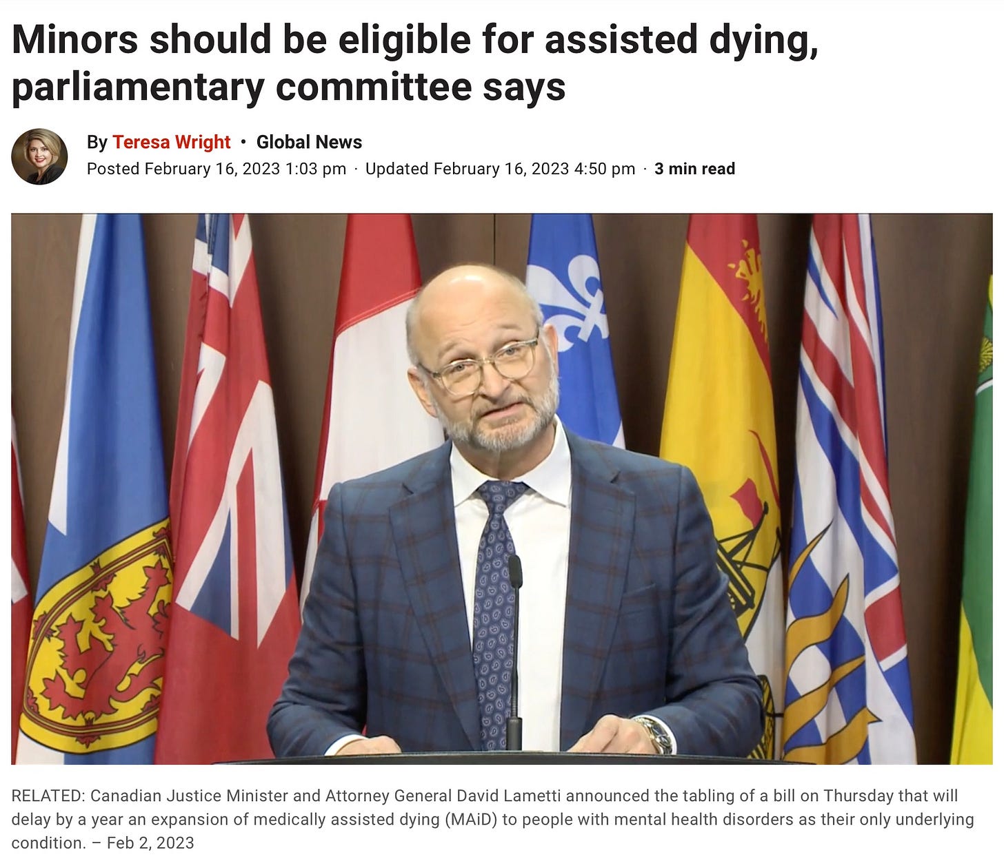 It seems that the red lines against legalized killing just keep getting widened all the time. In Canada, you can now kill healthy adults whose only disorder is a mental health diagnosis (and those can be pinned on anyone—I am living proof of how the state tried to pin one on me) or you can kill a child.