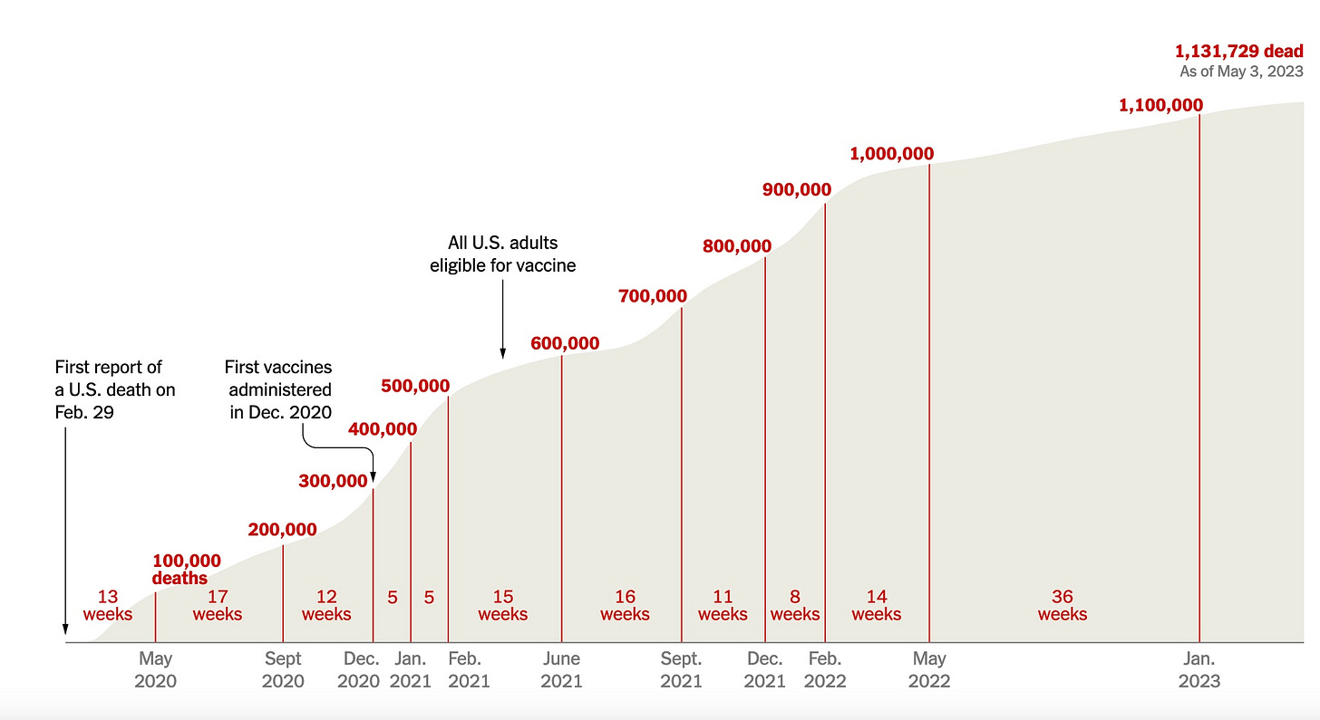 And the CDC and NY Times say it killed in total 1.1 million Americans. I thought we had reached that number in 2021. But maybe CDC is subtracting the ‘with’ not ‘from’ deaths it used to include as COVID deaths?