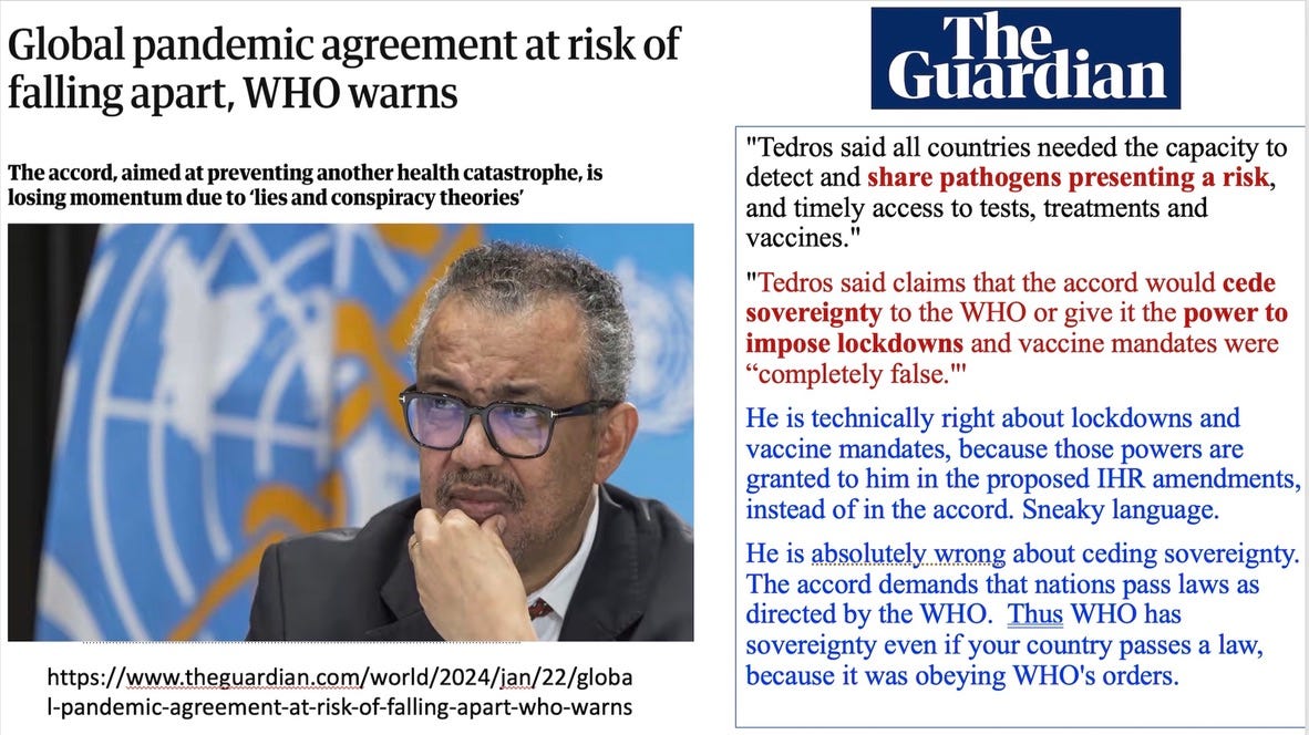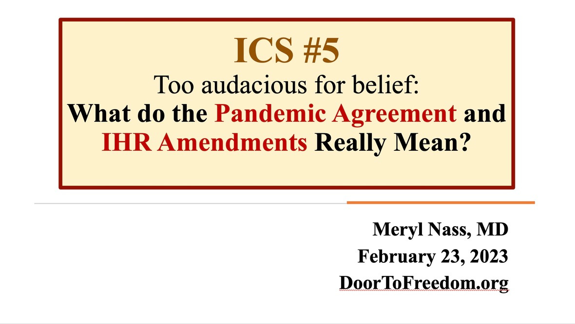 This is the current name of the Pandemic Treaty: the Pandemic Agreement. Sounds much softer and gentler than a treaty.