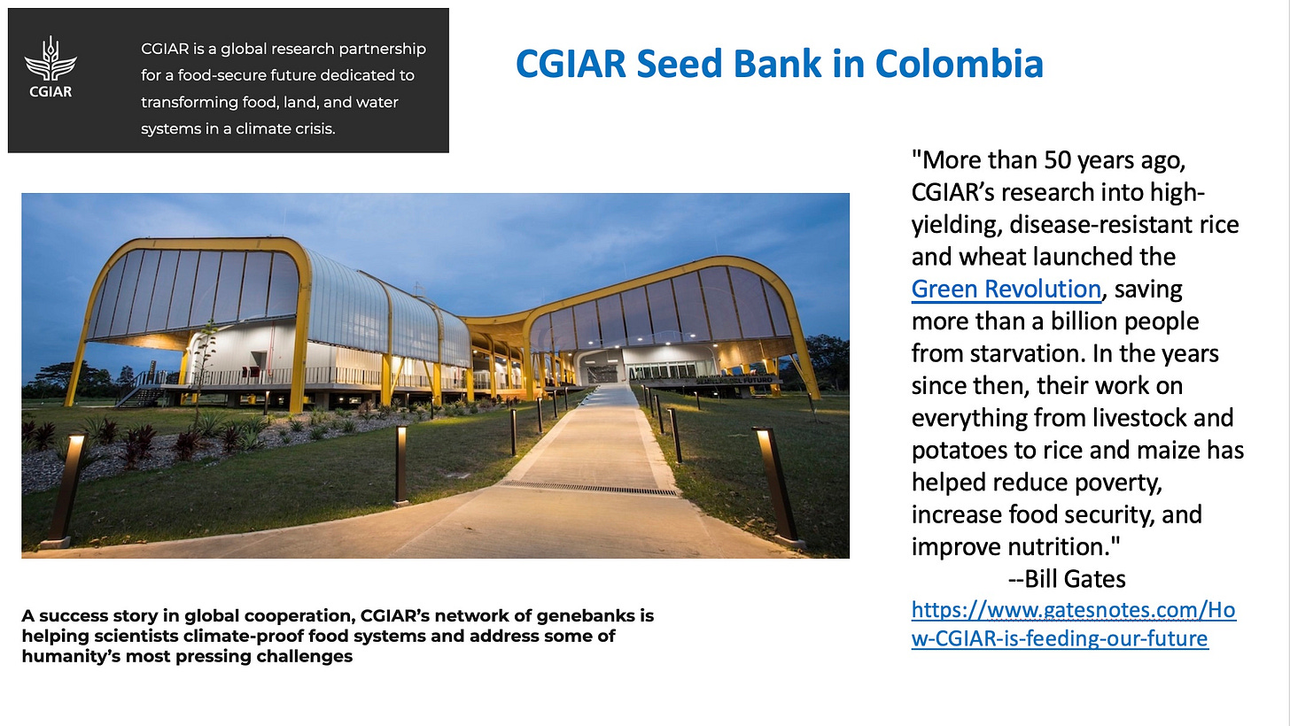 Many of these new institutions were created since 2000, by people like Bill Gates: GAVI, CEPI, etc. Some are older organizations that Bill Gates has basically co-opted and taken over, via donations, like CGIAR, supposed to help developing countries with agriculture, but now focused on climate change:
