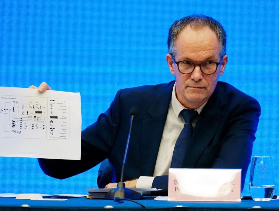 Five days ago WHO’s head of its COVID origins inquiry to China got canned. You recall Peter Ben Embarek, who said COVID probably came from frozen food, then later said the Chinese made him say that. He was also the head of One Health at the WHO—in other words, he was a tool who did as told. But he may have done other things too. He has been canned for sexual misconduct.