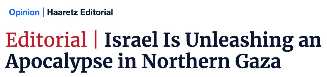"Israel Is Unleashing an Apocalypse in Northern Gaza"/ Ha'aretz editorial today