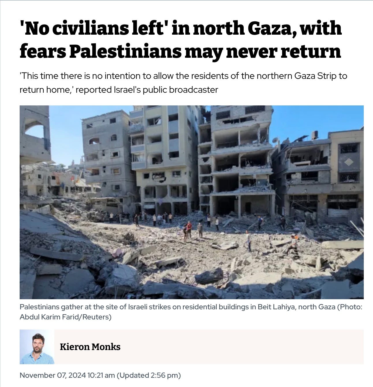 North Gaza is being cleansed of Palestinians for annexation as part of Israel.