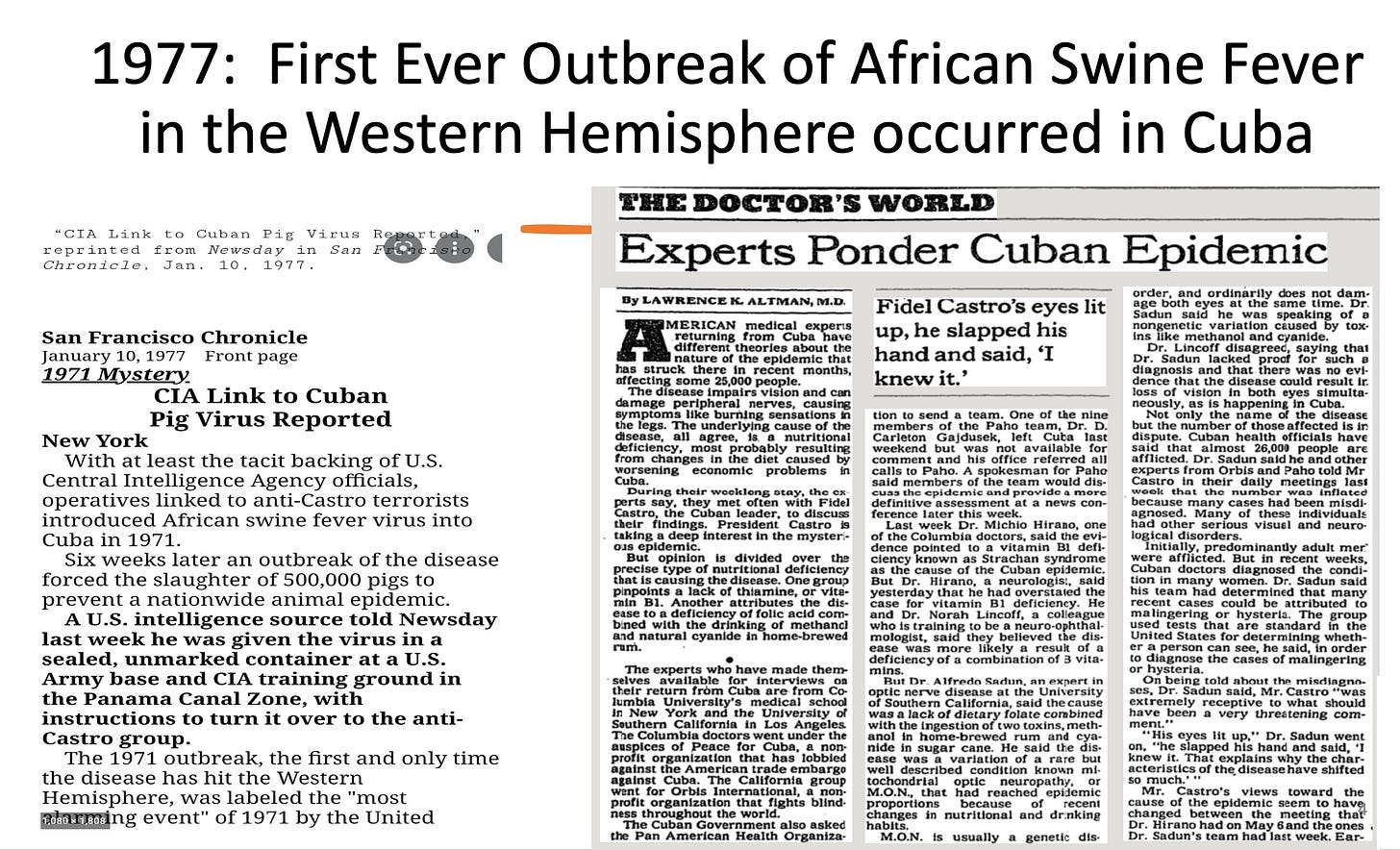 Historically most biowarfare agents were naturally occurring viruses or bacteria. Here is one example in which whistleblowers identified the hand of the CIA.