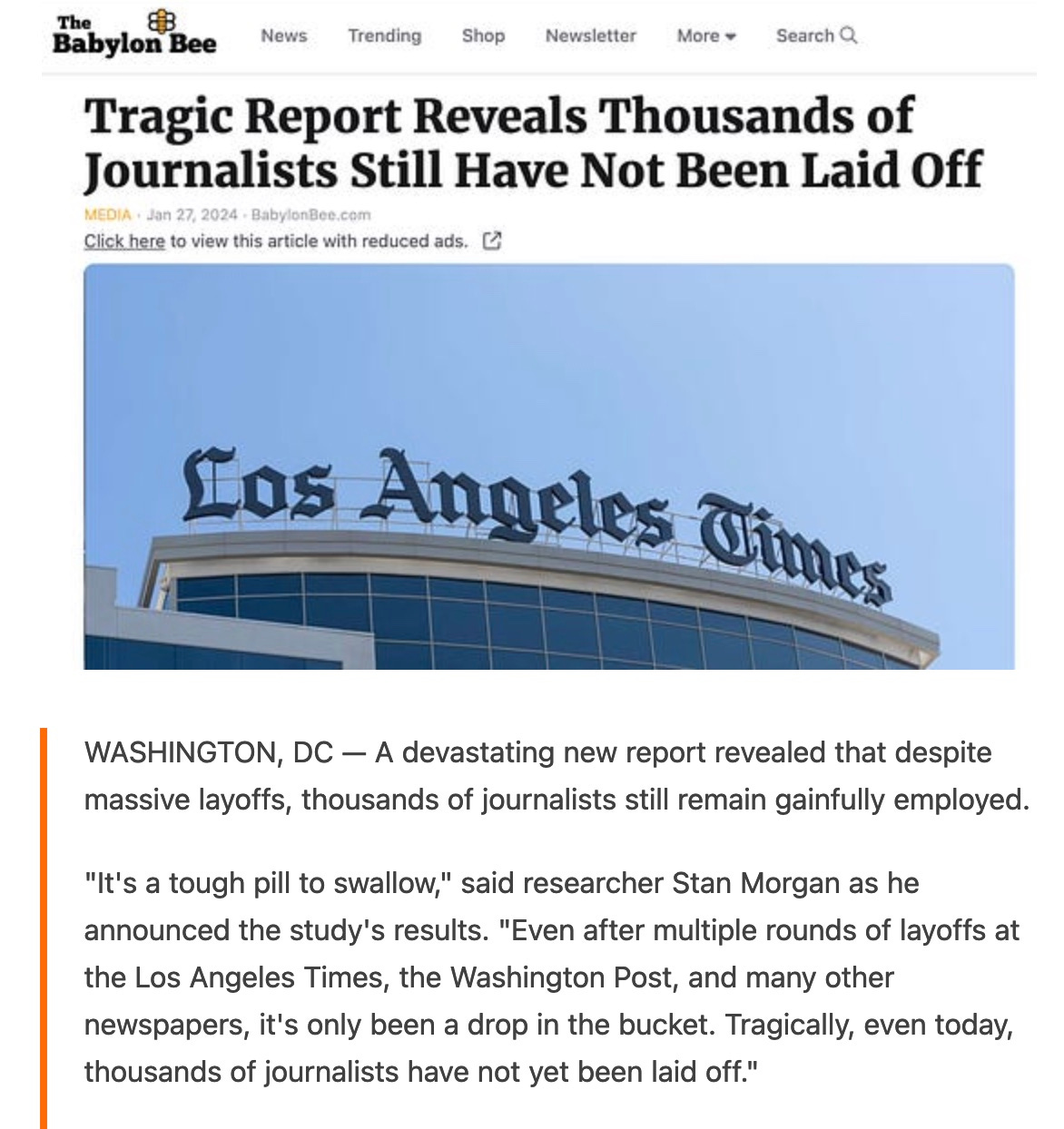 Love this one. Who would have suspected that the owners of our mainstream press could be bought off so cheaply, and would willingly torpedo freedom of the press? Centralization of almost all the US’ major media into 7 big companies is all it took. And they don’t seem to mind their subsidiaries committing suicide, which is a unique (and dare I say it, unsustainable) business strategy.