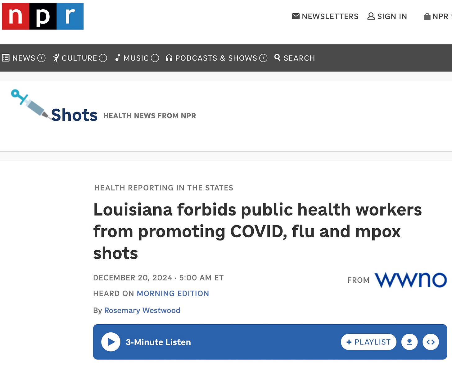 This is a very long article produced by Kaiser and broadcast by NPR (your tax dollars) that bashes Louisiana, which can be read or listened to here: