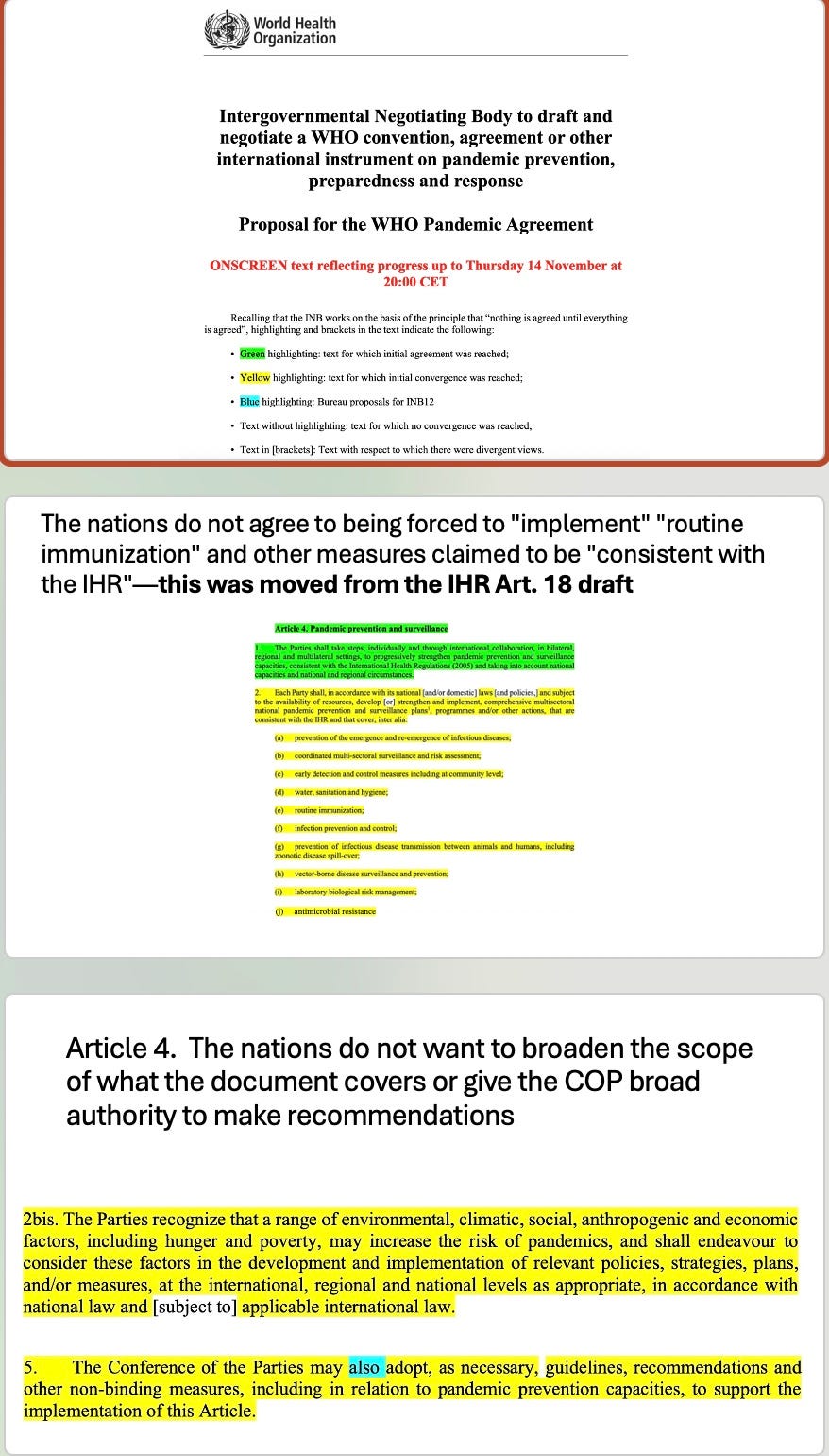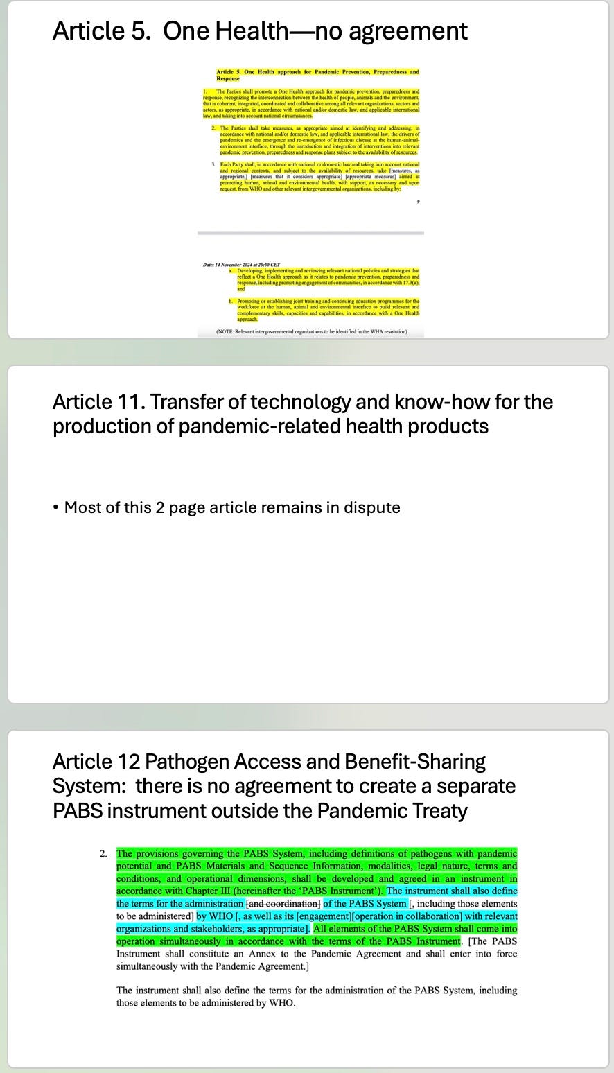 Many have expressed misplaced fear that the Pandemic Treaty is about to be approved. So I have made screenshots to let everyone know that there is still considerable disagreement.