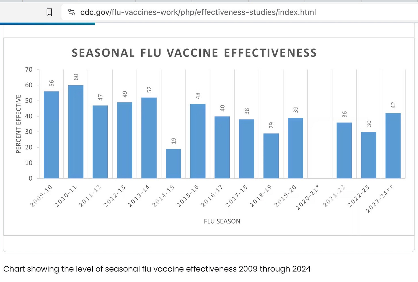 Regarding losing access to “global networks” that determine which strains of influenza to use in flu shots each year, Ms. Paun,—well—that data comes mostly from Australia, which we won’t lose access to. The US CDC pays for a lot of the flu strain analysis. Why does the US push the flu shots so vehemently when their efficacy is poor? Even the CDC admits, using its most favored data, the shots have not provided even 50% efficacy for a single season during the last 10 years: