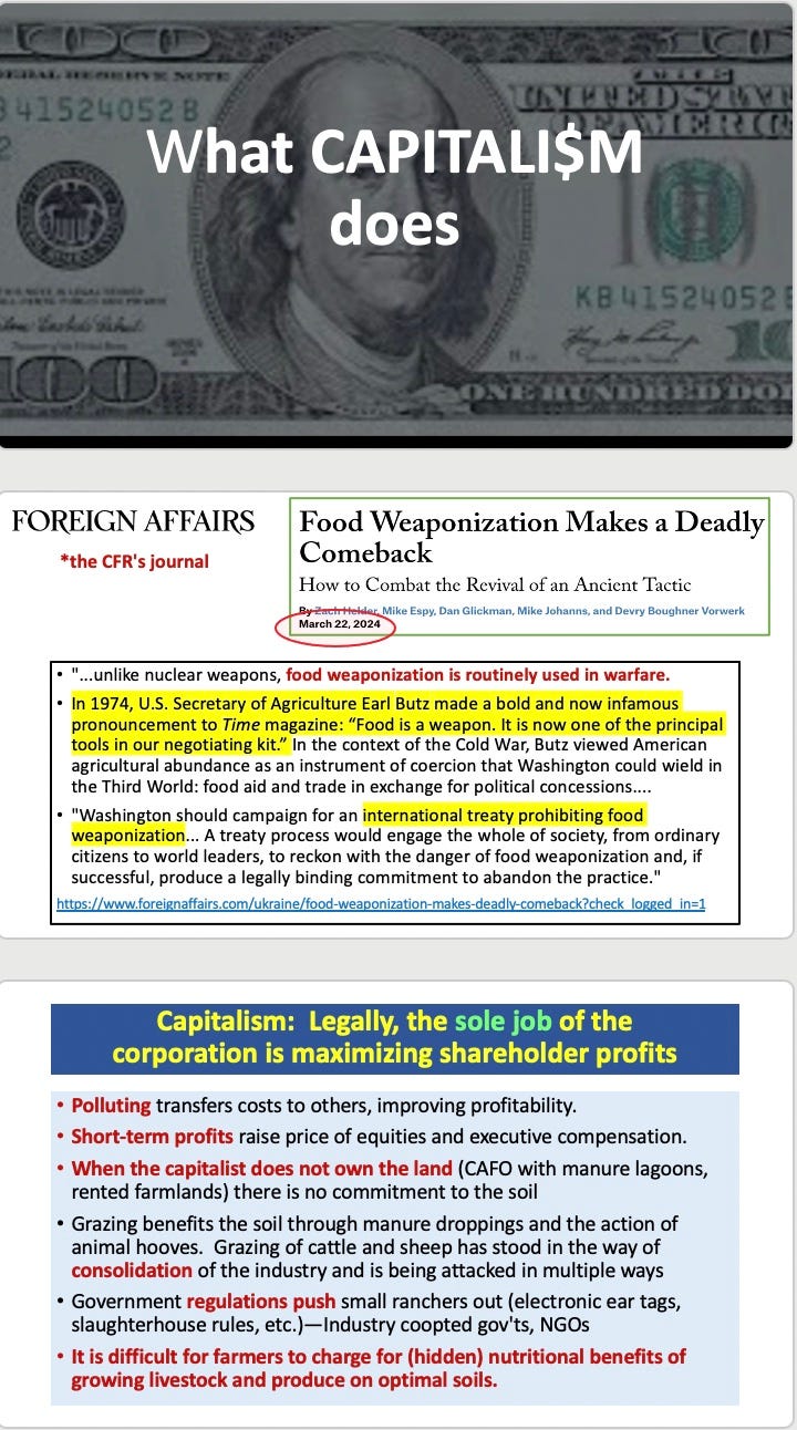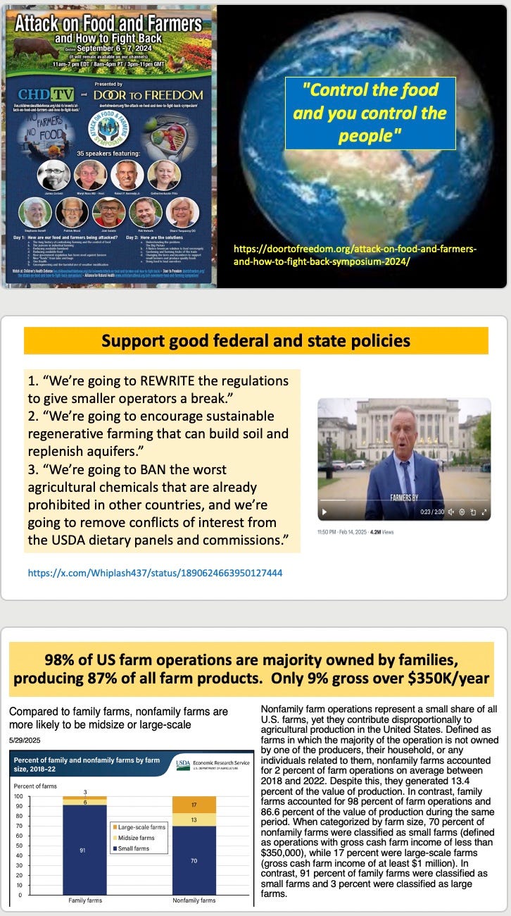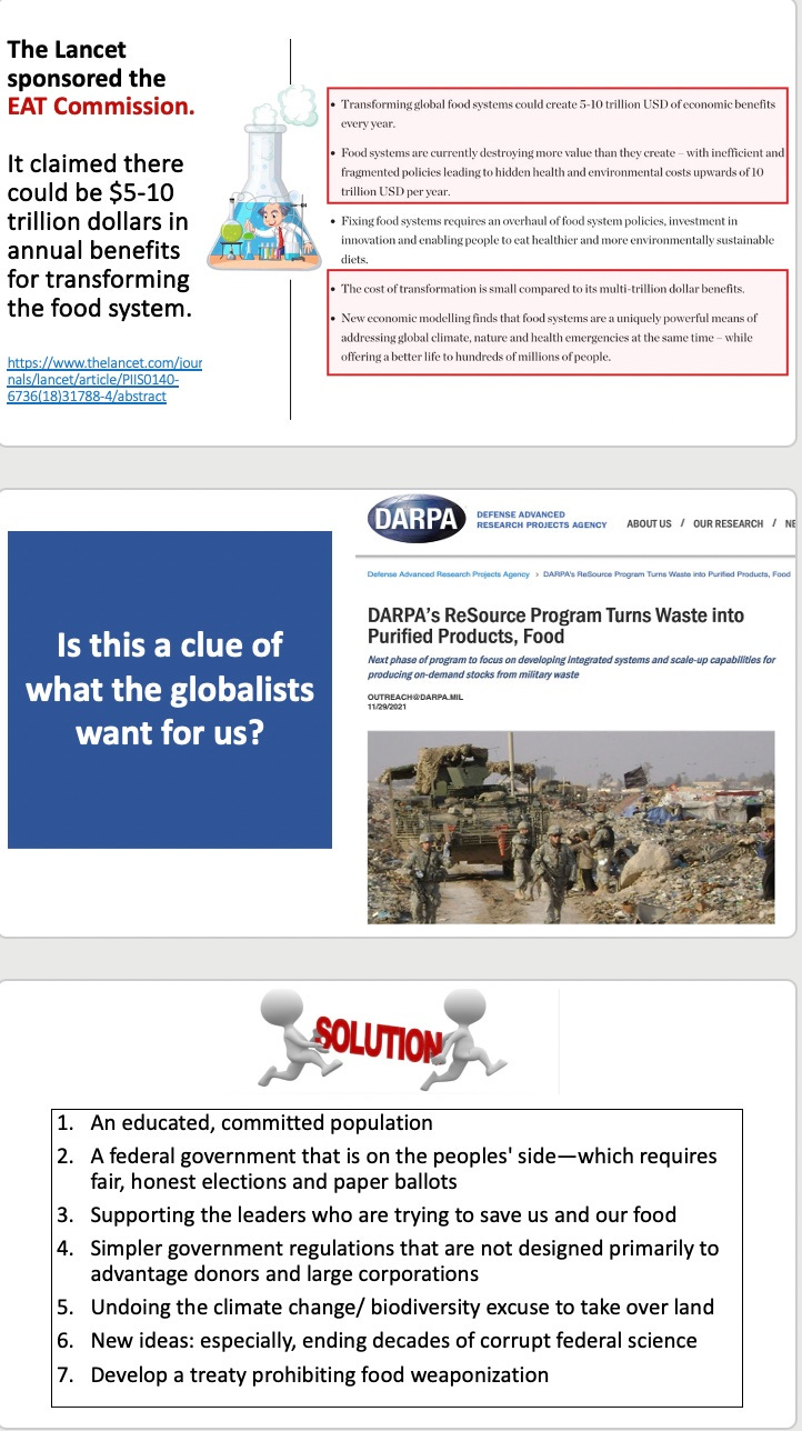 Hearing your talk in Hudson NY was good, but this is better--being able to see the slides and consider the points you make at leisure. It appears that many of the same people who brought us the Covid "pandemic" are behind the drive to control our food.