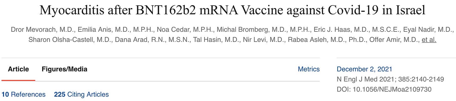 By April 2021, the Israeli media were all over the story, and it was estimated in Israel that young men had a 25 times elevated risk of myocarditis after the shots. There was a little bit of press in the US also, but somehow the story never got legs.