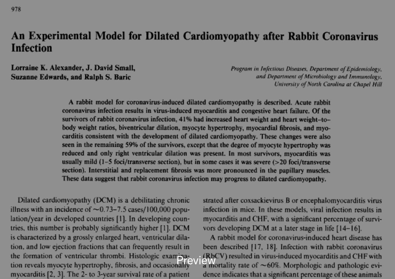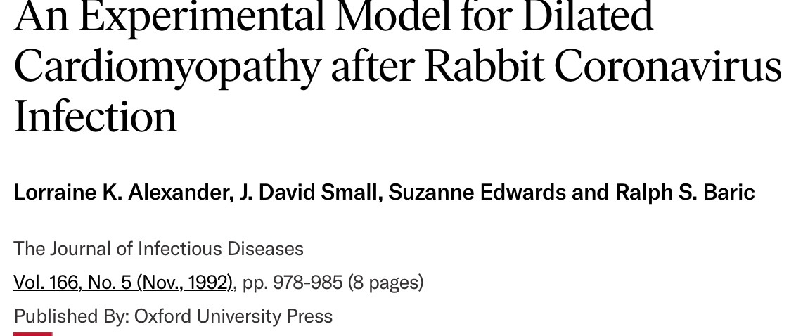 Addendum. Reader Geoff Wexler just pointed out that Ralph Baric knew 31 years ago that in rabbits a coronavirus infection caused myocarditis.