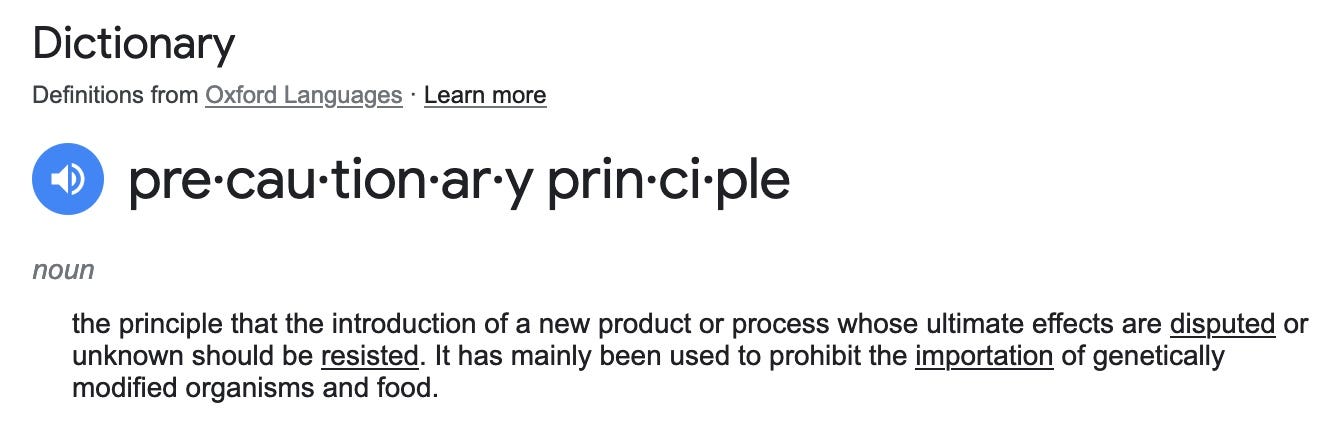 The Precautionary Principle in medicine asserts we must assume there is a problem until proven otherwise and resist the introduction of such products: