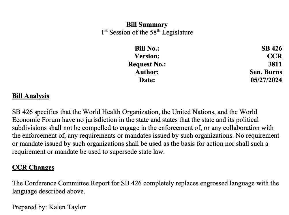 Oklahoma becomes 2nd US state to pass a law that denies jurisdiction to the WHO, UN and WEF
