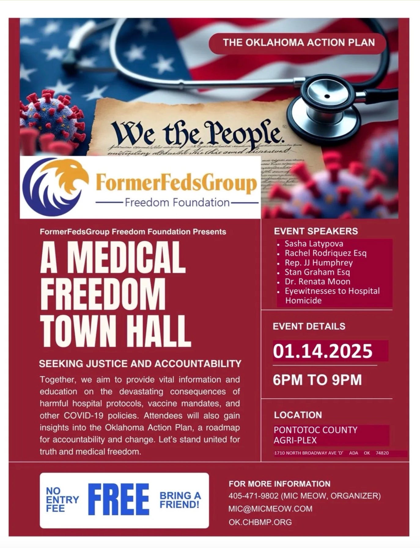 from Sasha’s substack, organized by MicMeow, the nurse who was instrumental in getting Oklahoma’s law passed that denied jurisdiction to the WHO, UN and WEF, and the Former Feds Group: