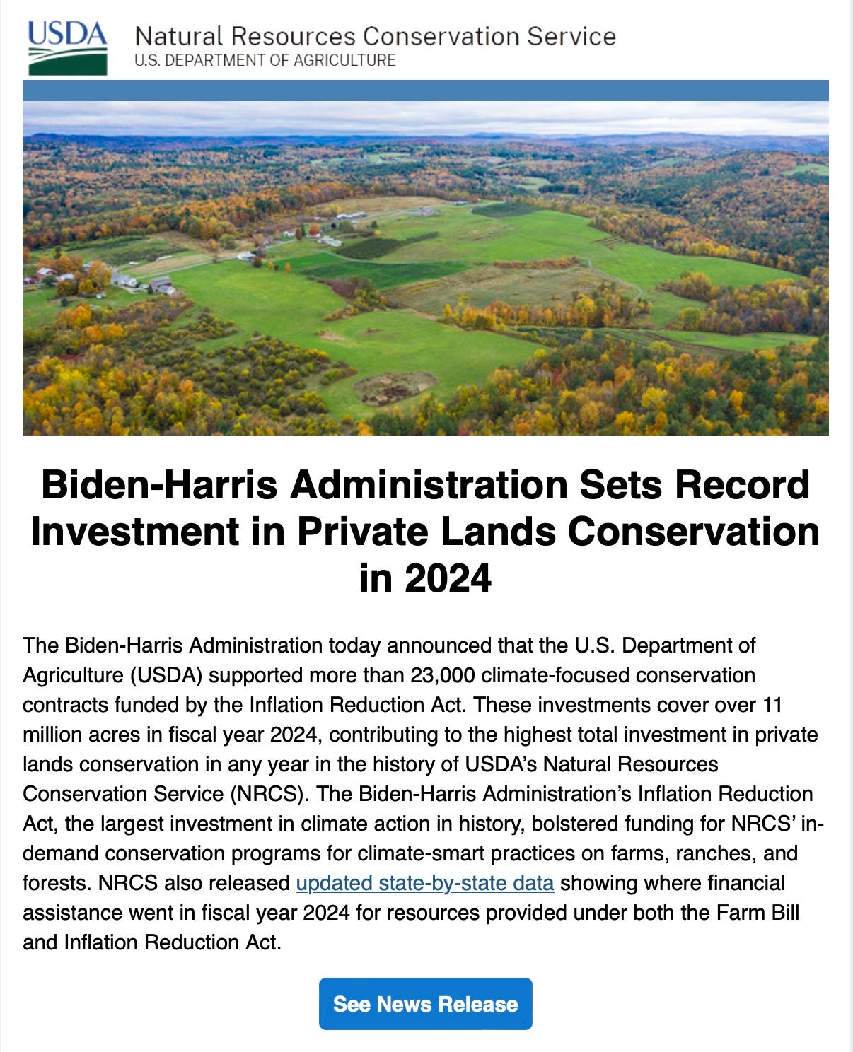 OMG, 11 million acres "conserved" in 2024 under Biden, using Inflation Reduction Act funds.