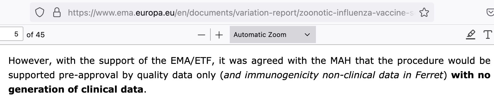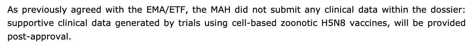 “No clinical data” means the vaccine was not going to be tested in humans before licensure. As you can see, the regulators themselves bolded this nugget.