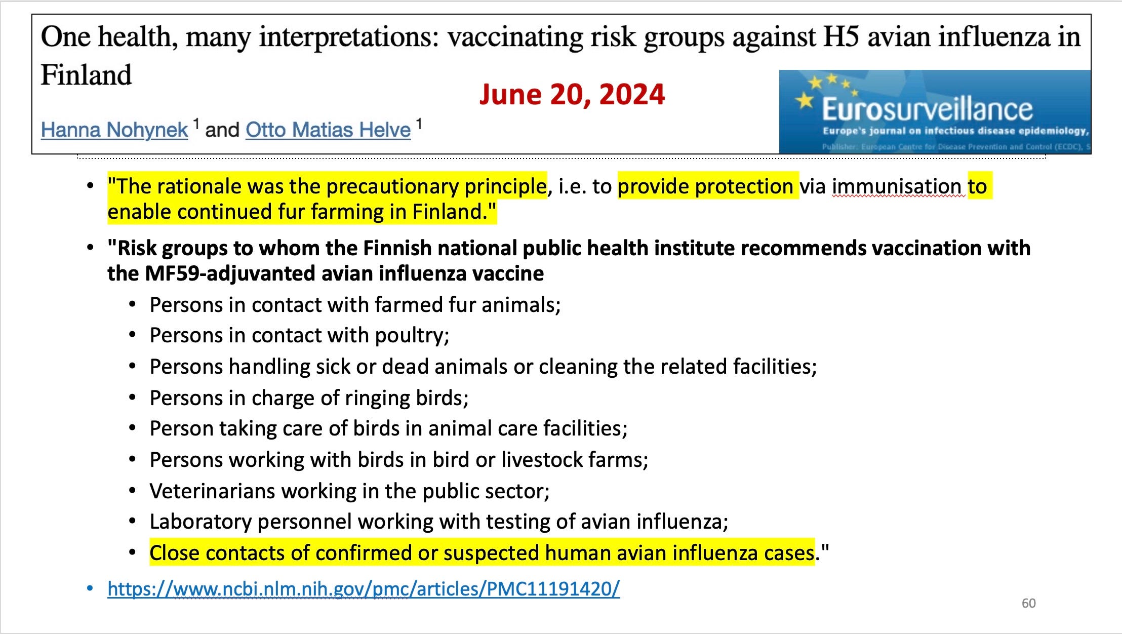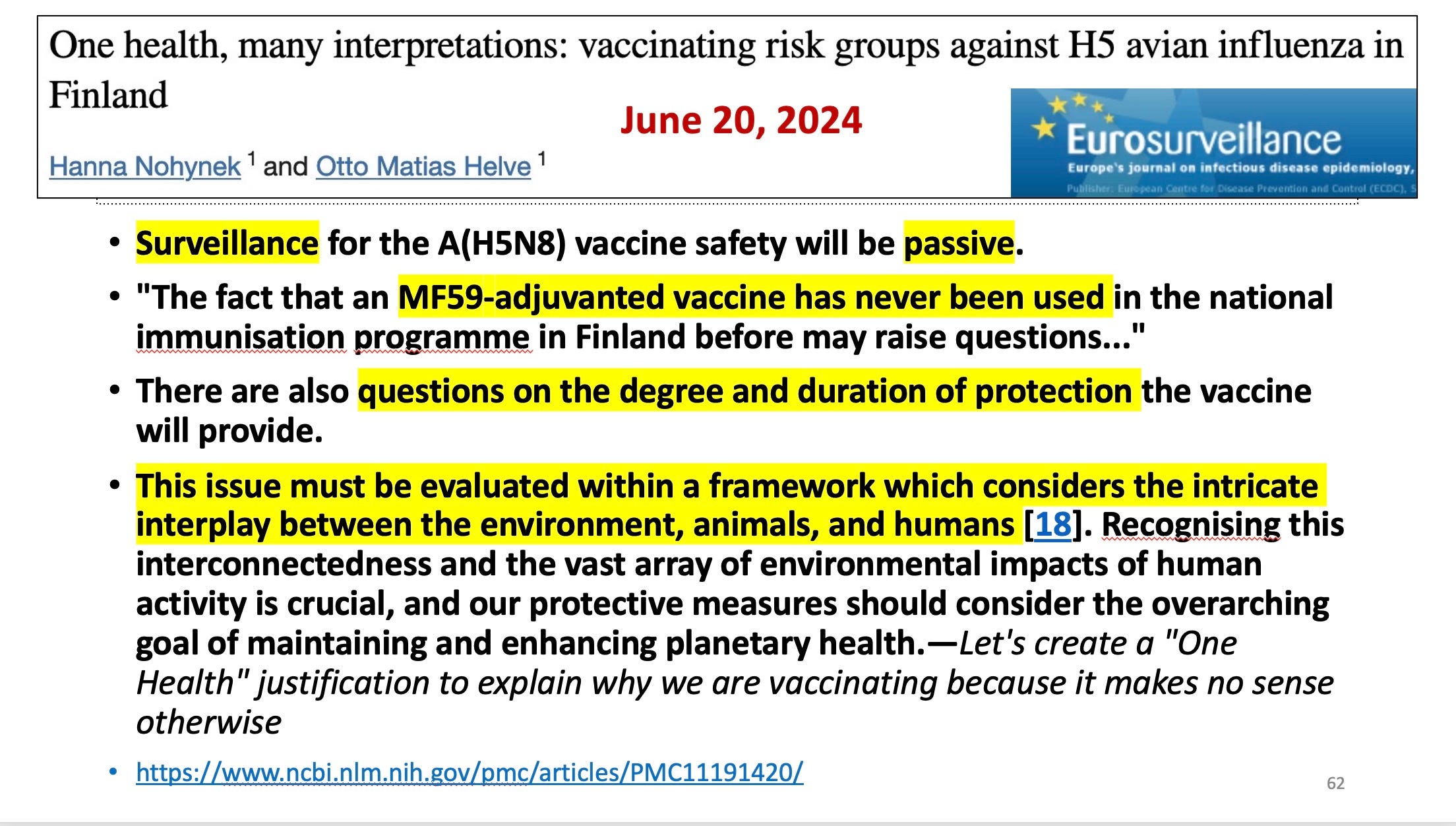 UPDATE July 17: Here is a video made by Sami Antinniemi, most in Finnish, about bird flu and the bird flu vaccine, which includes his interview with Hanna Nohynek, Finland’s chief vaccine officer, and an interview with me.