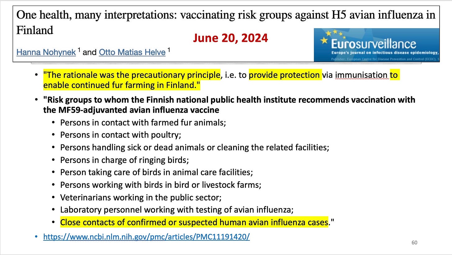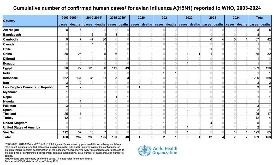 That is the justification: we are dealing with a deadly disease, so we have to cut corners. Except bird flu has mutated to a barely noticeable form. And is no longer deadly. WHO claims there have been only 8 human deaths due to H5N1 bird flu since 2020, worldwide.