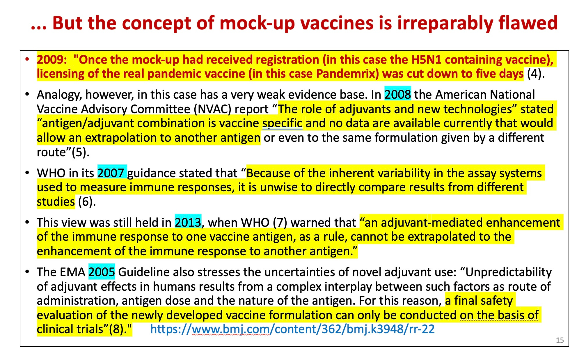 Dr. Tom Jefferson, who headed the Cochrane vaccine study group for may years, pointed out that the mock-up (recently the process underwent a name change to “pre-pandemic”) vaccine approach was entirely unjustified in the following communication to the BMJ.